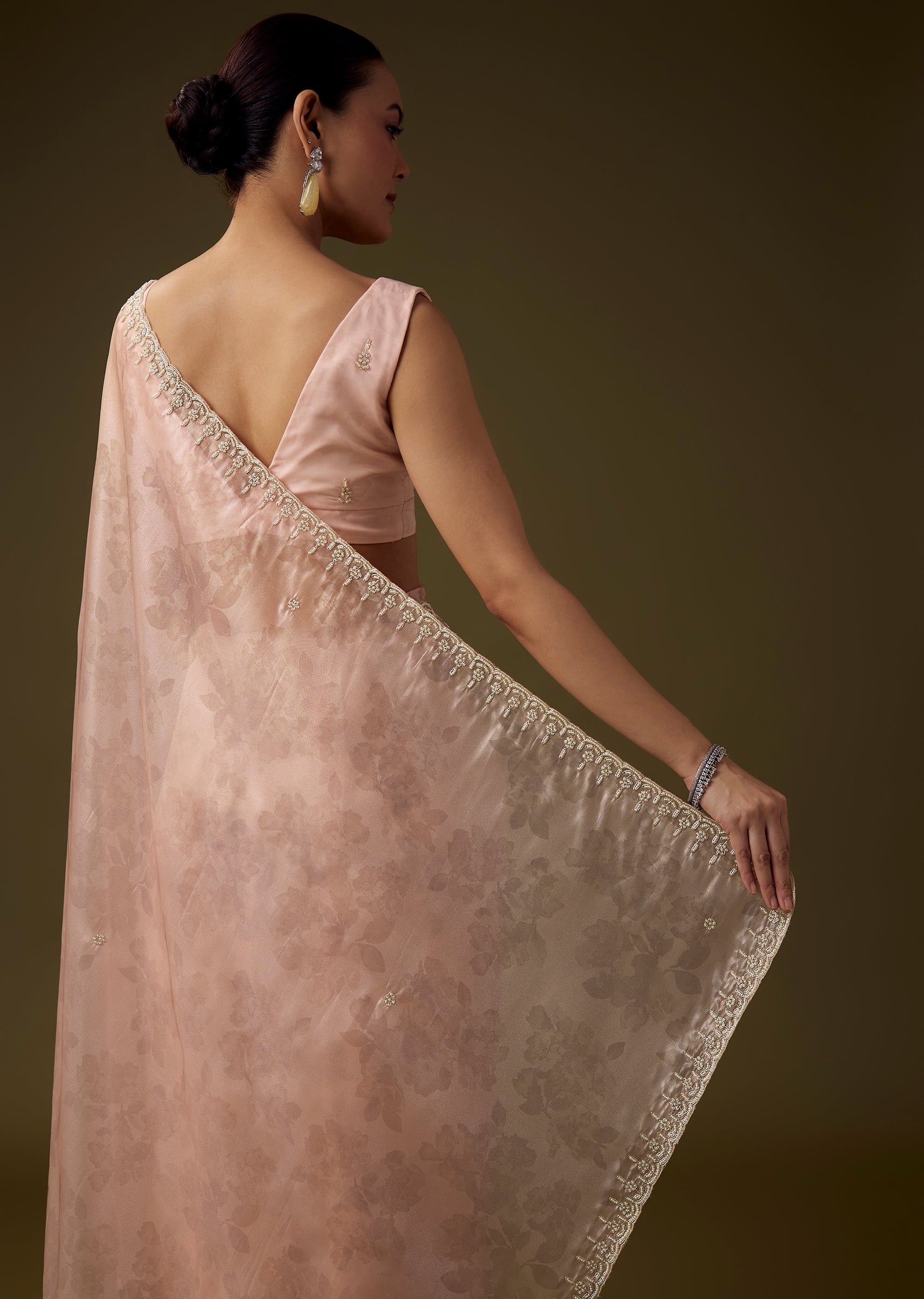 Pink Tissue Moti Embroidered Saree with Unstitched Blouse