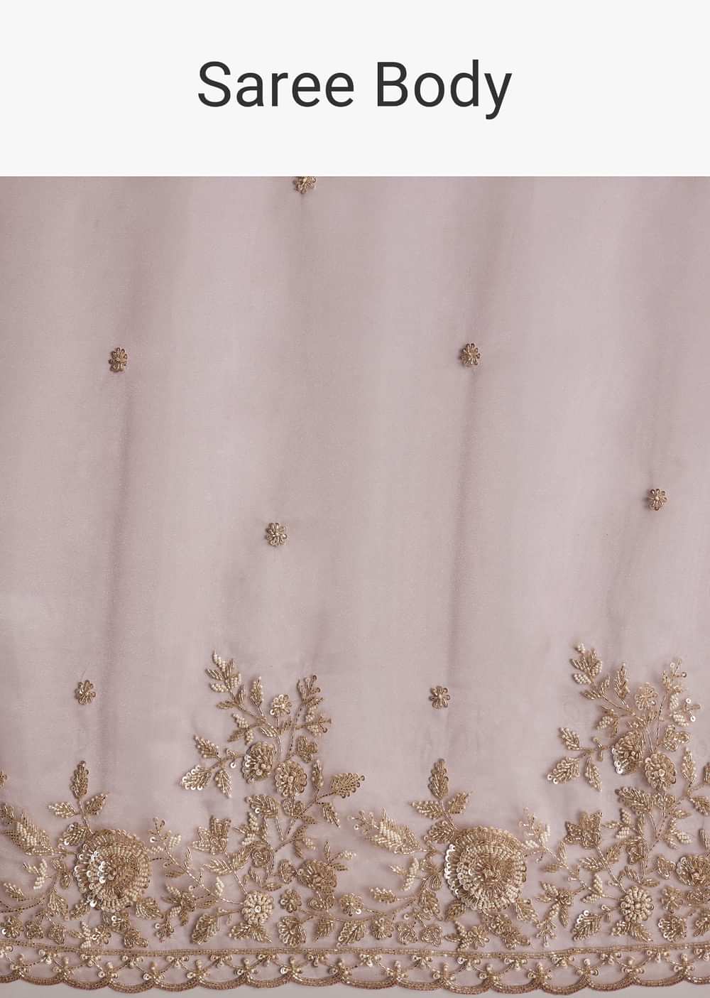 Pink Tissue Saree Adorned With Scallop Border And Heavy Embroidery