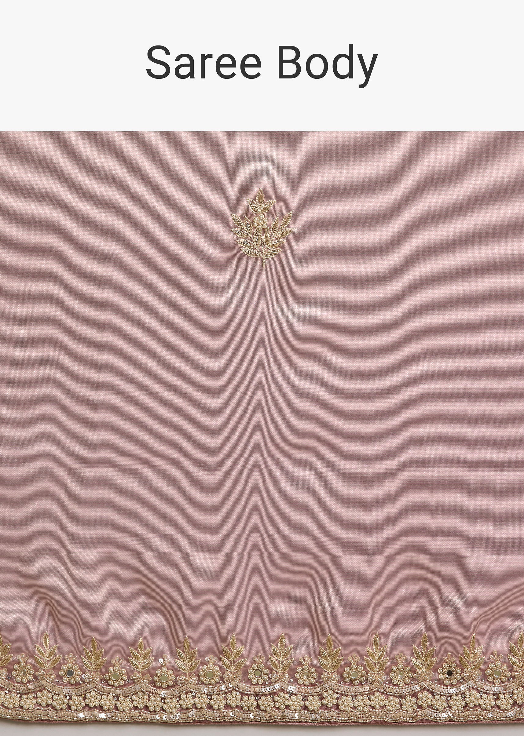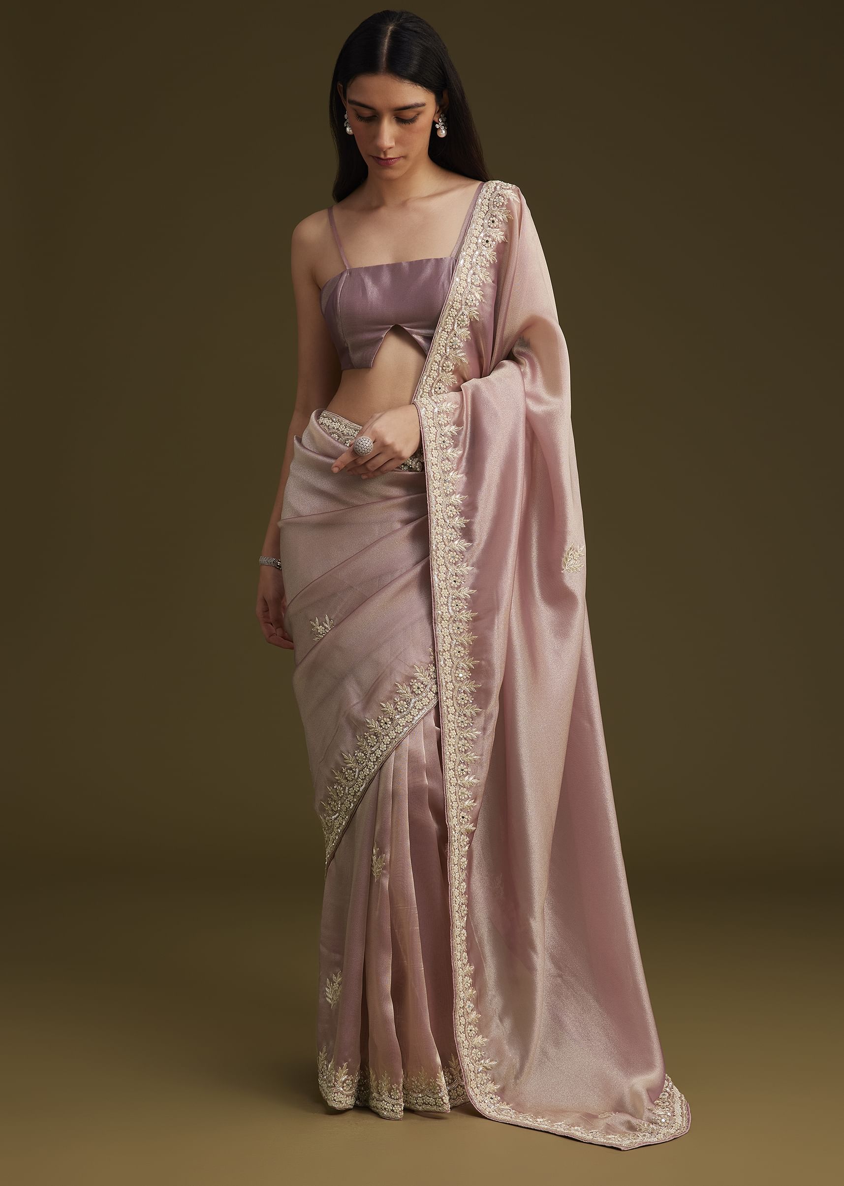Pink Tissue Saree With Mirror And Sequins Embroidery