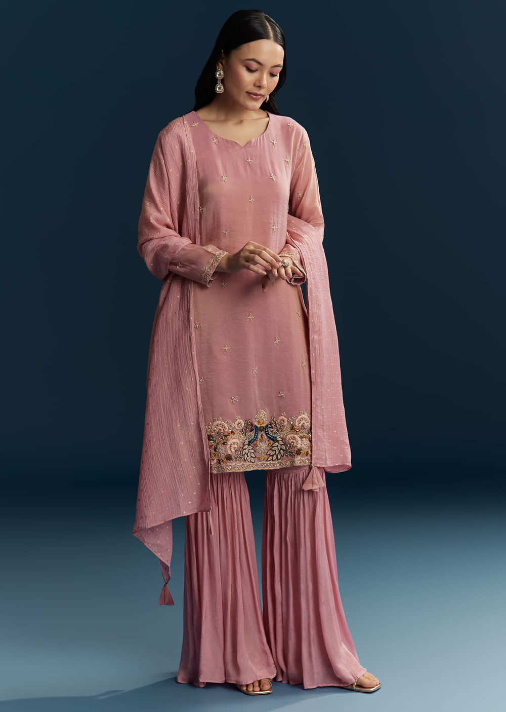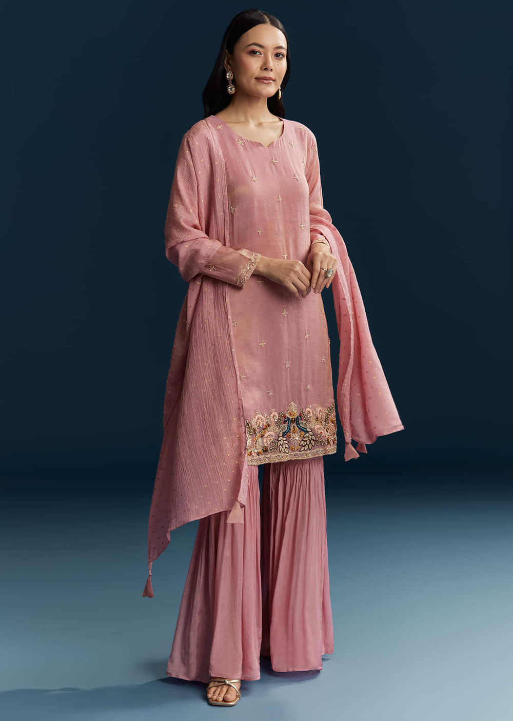 Pink Tissue Sharara Suit With Zardosi And Thread Work