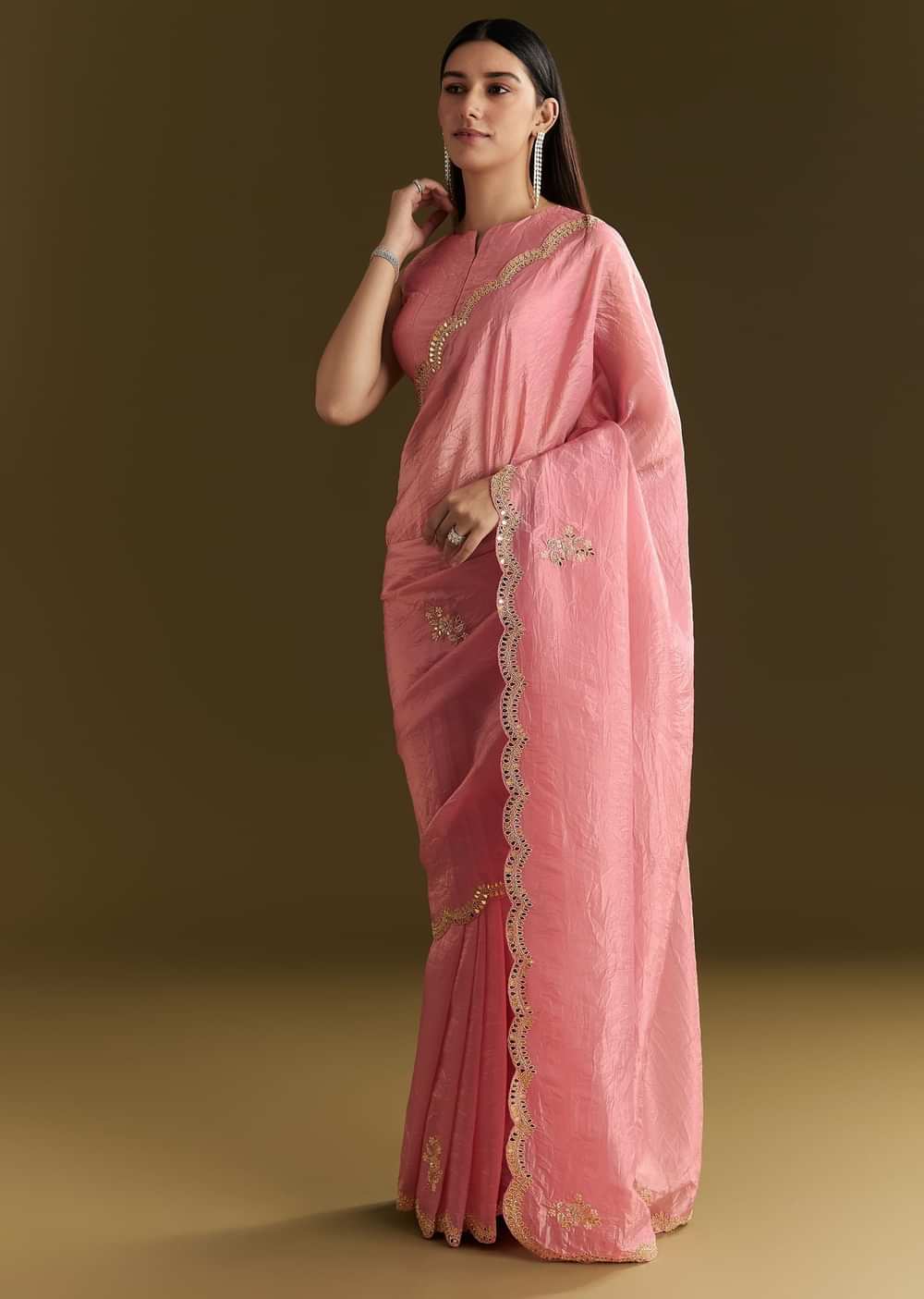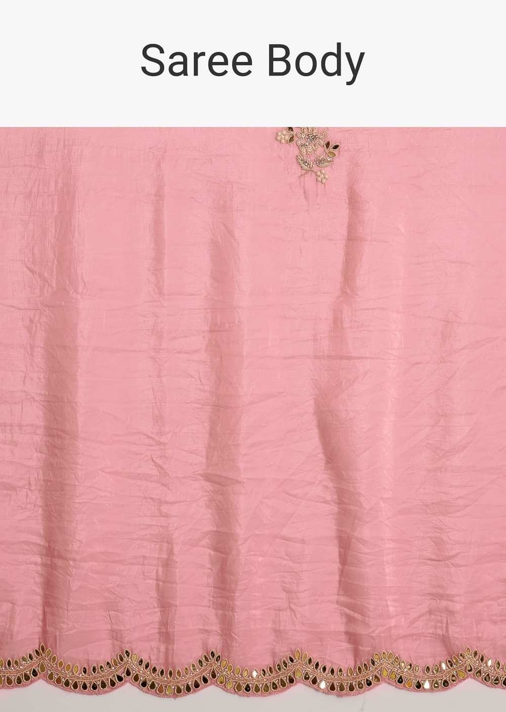 Pink Tissue Zardozi Saree With Scallop Border
