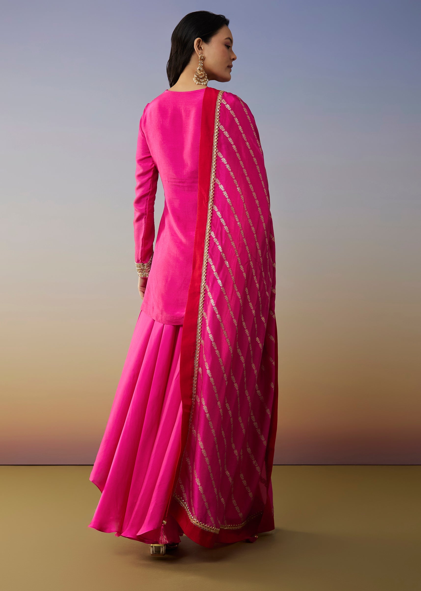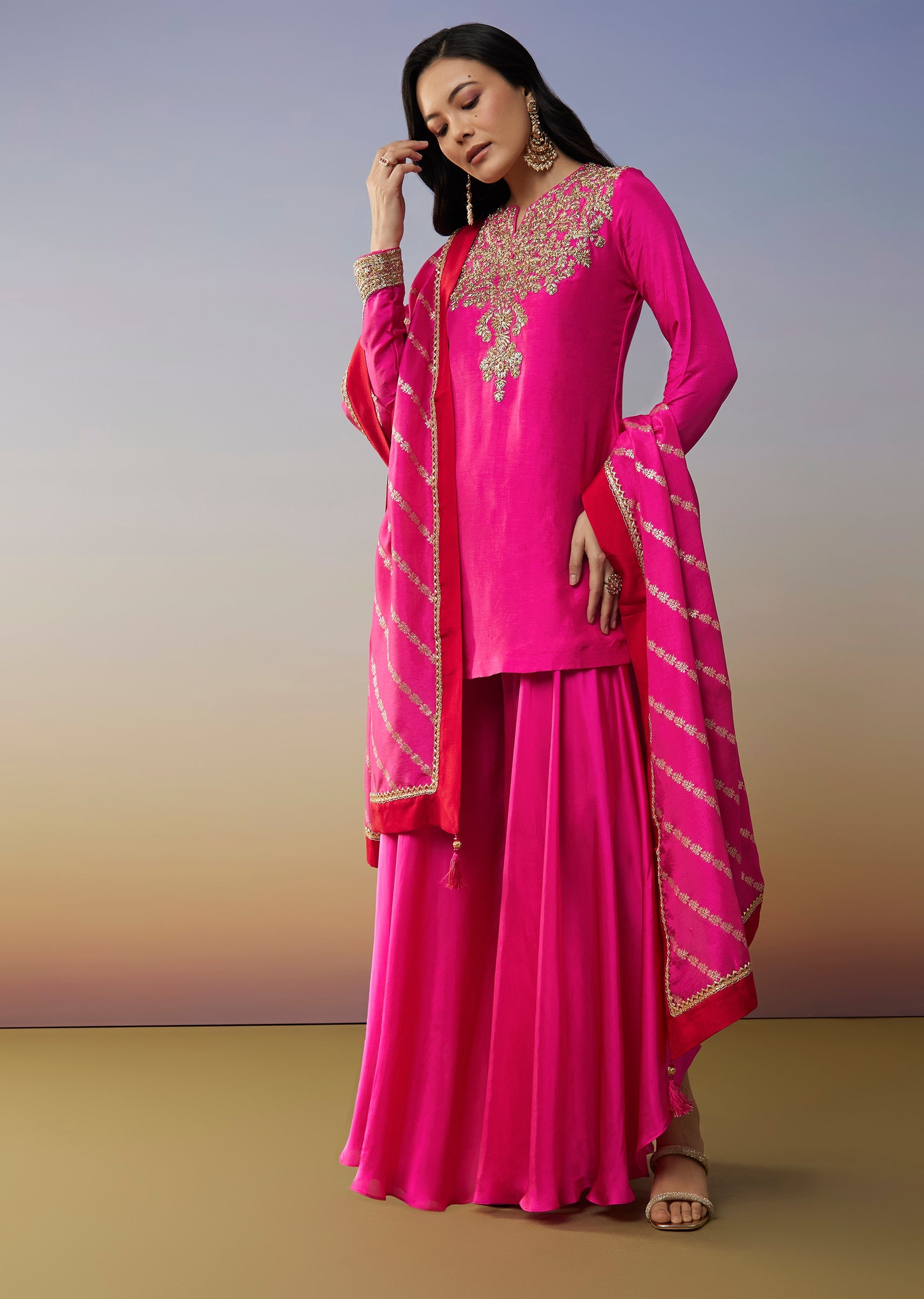 Pink Viscose Satin Palazzo Suit with Zardosi Work