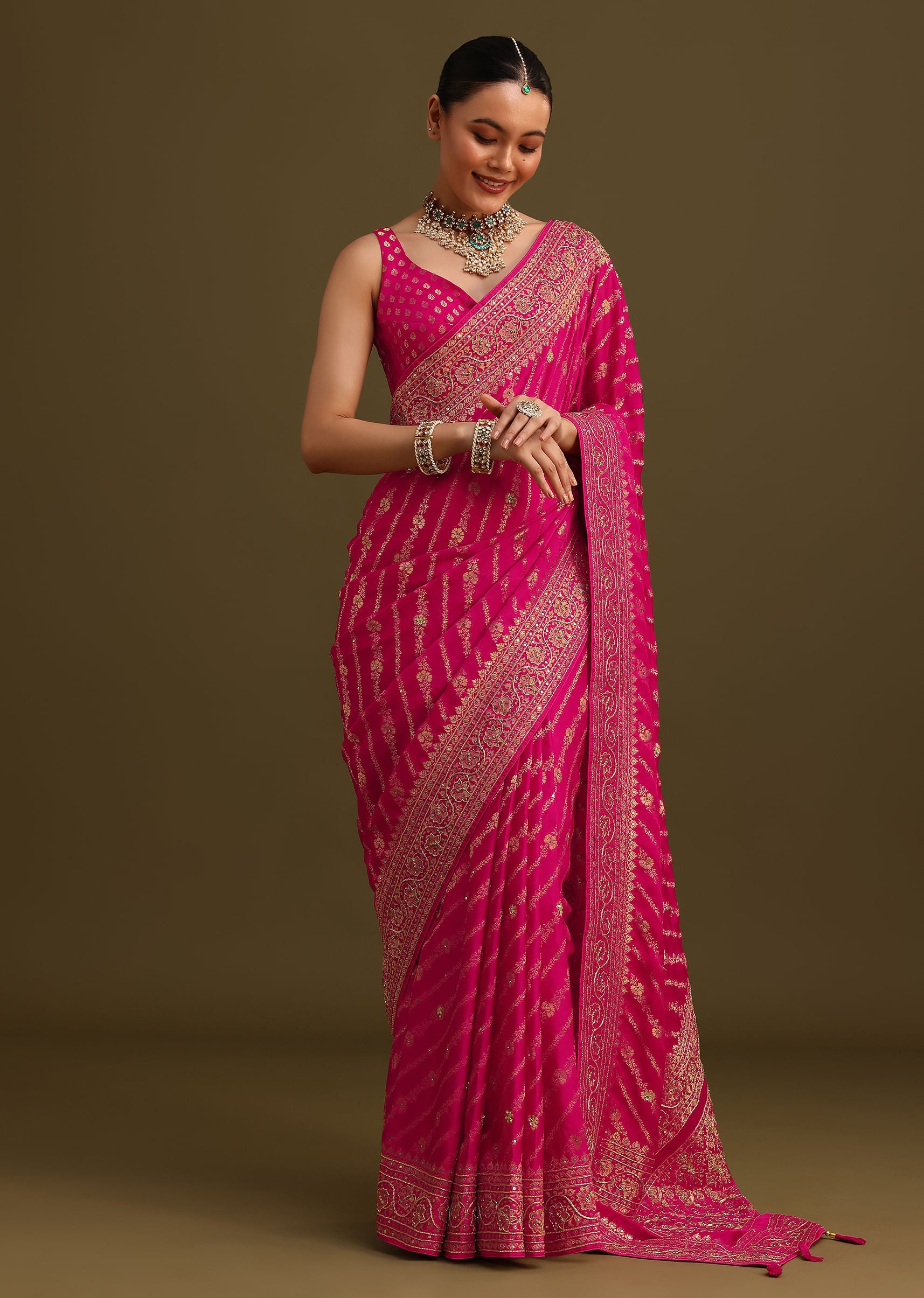 Pink Zardosi Embroidered Saree With Cutdana And Stone Work