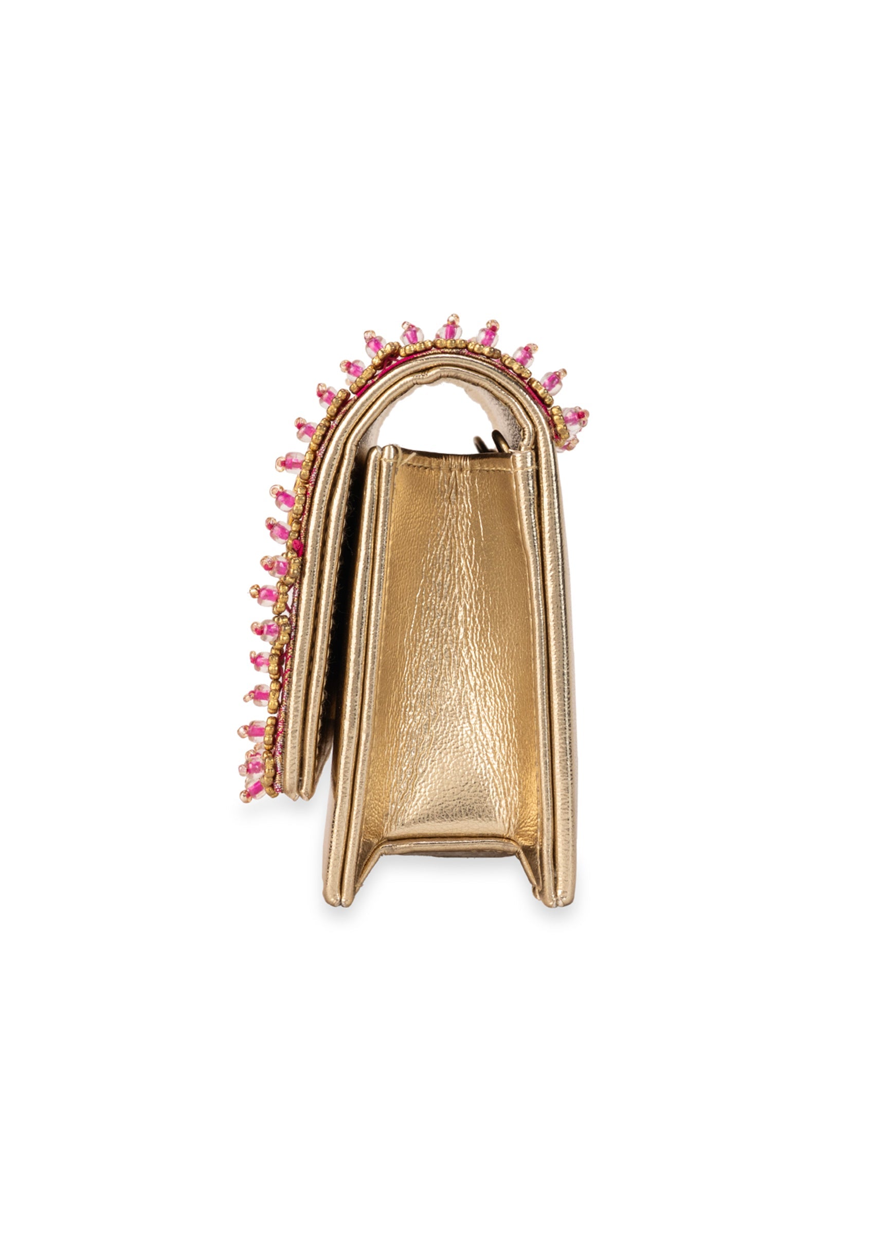 Pair with gold or Kundan jewelry to echo the bag’s intricate detailing.