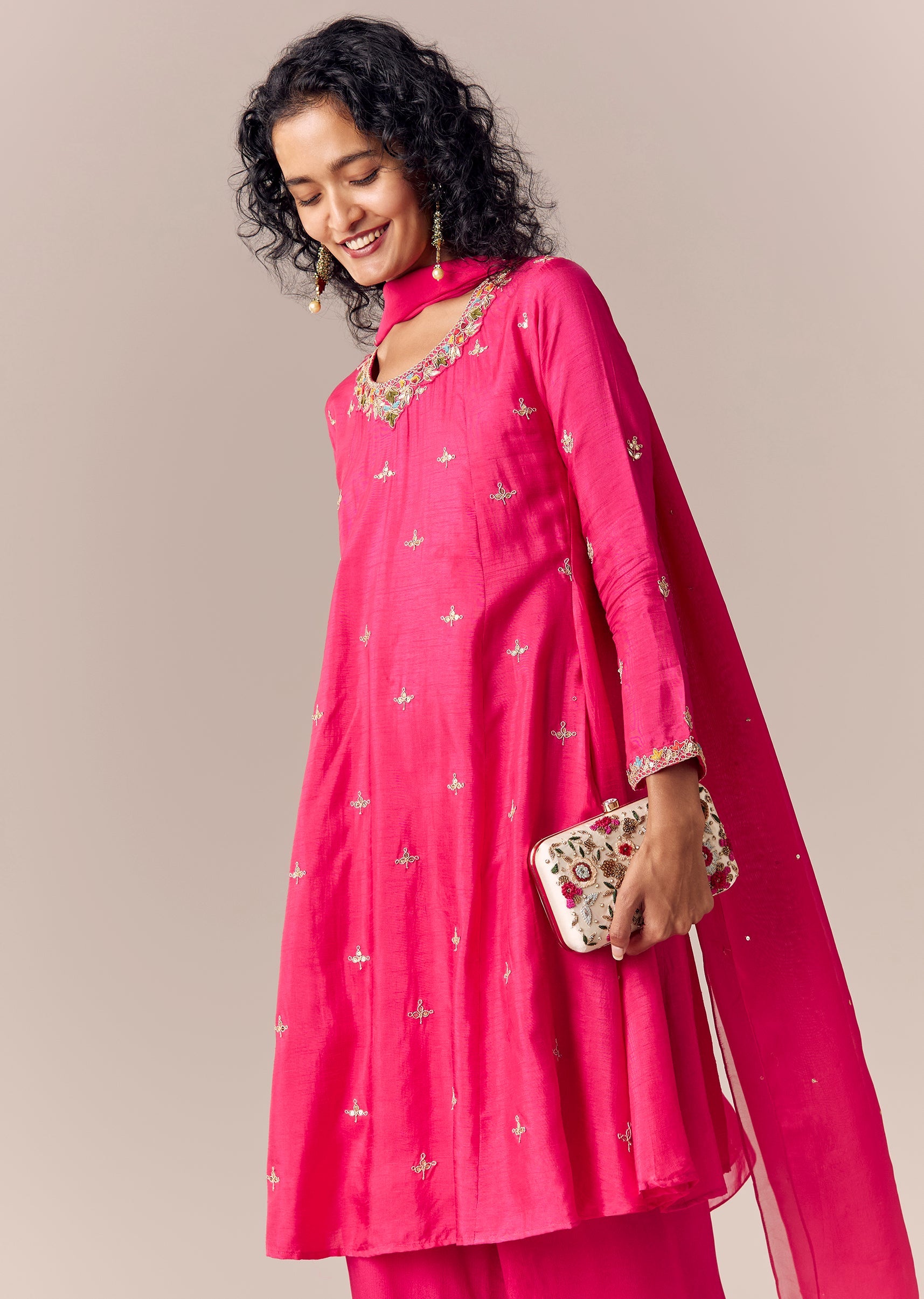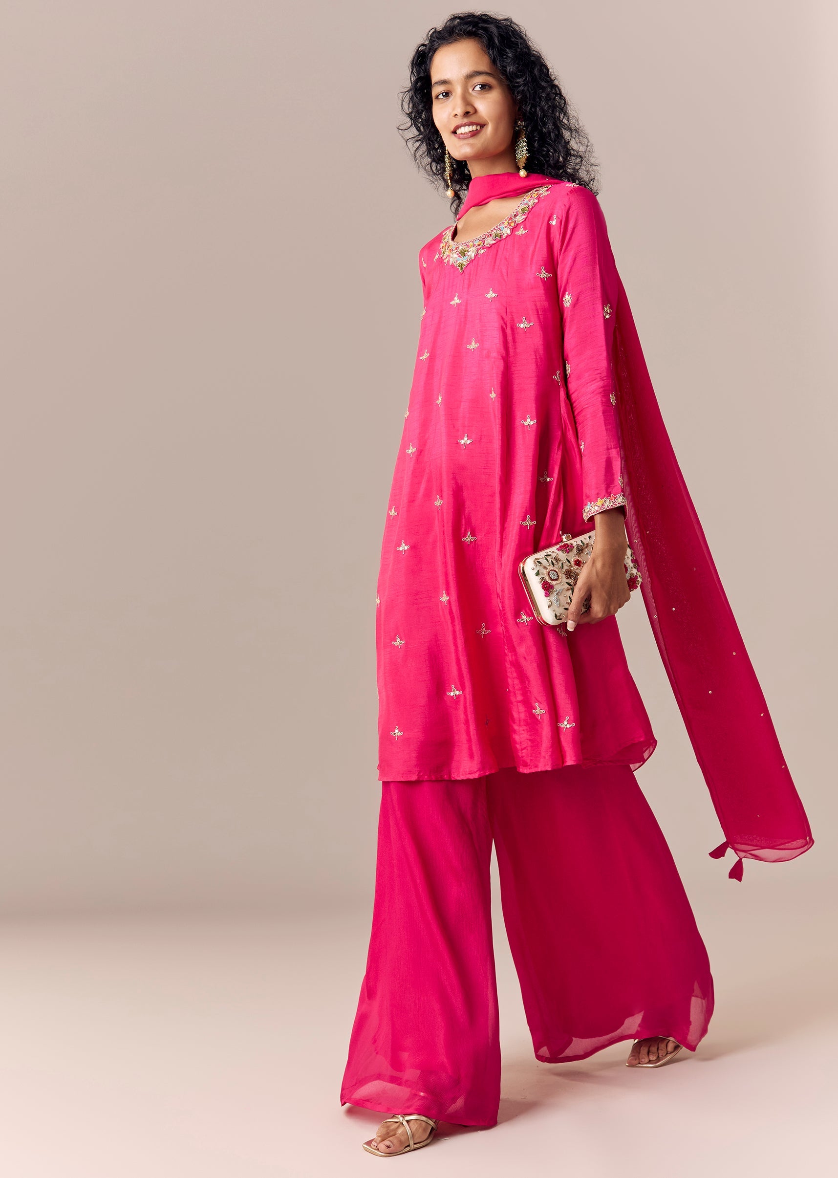 Add chandbalis and heels for a clean, elegant finish.