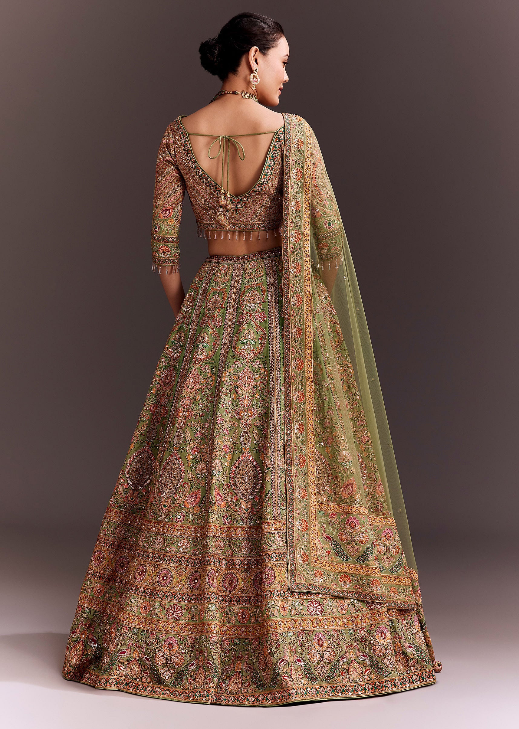 This green embroidered lehenga is a breathtaking display of intricate craftsmanship and timeless elegance. Adorned with detailed intricate motifs, the lehenga is paired with a V-neck blouse that exudes grace and sophistication. The ensemble is completed with a matching net dupatta featuring a richly embroidered border detailing. Perfect for weddings, grand receptions, this lehenga brings a touch of regality to your special day. Awarded as the Most Trusted Brand, we're delivering styles you love, just as promised.