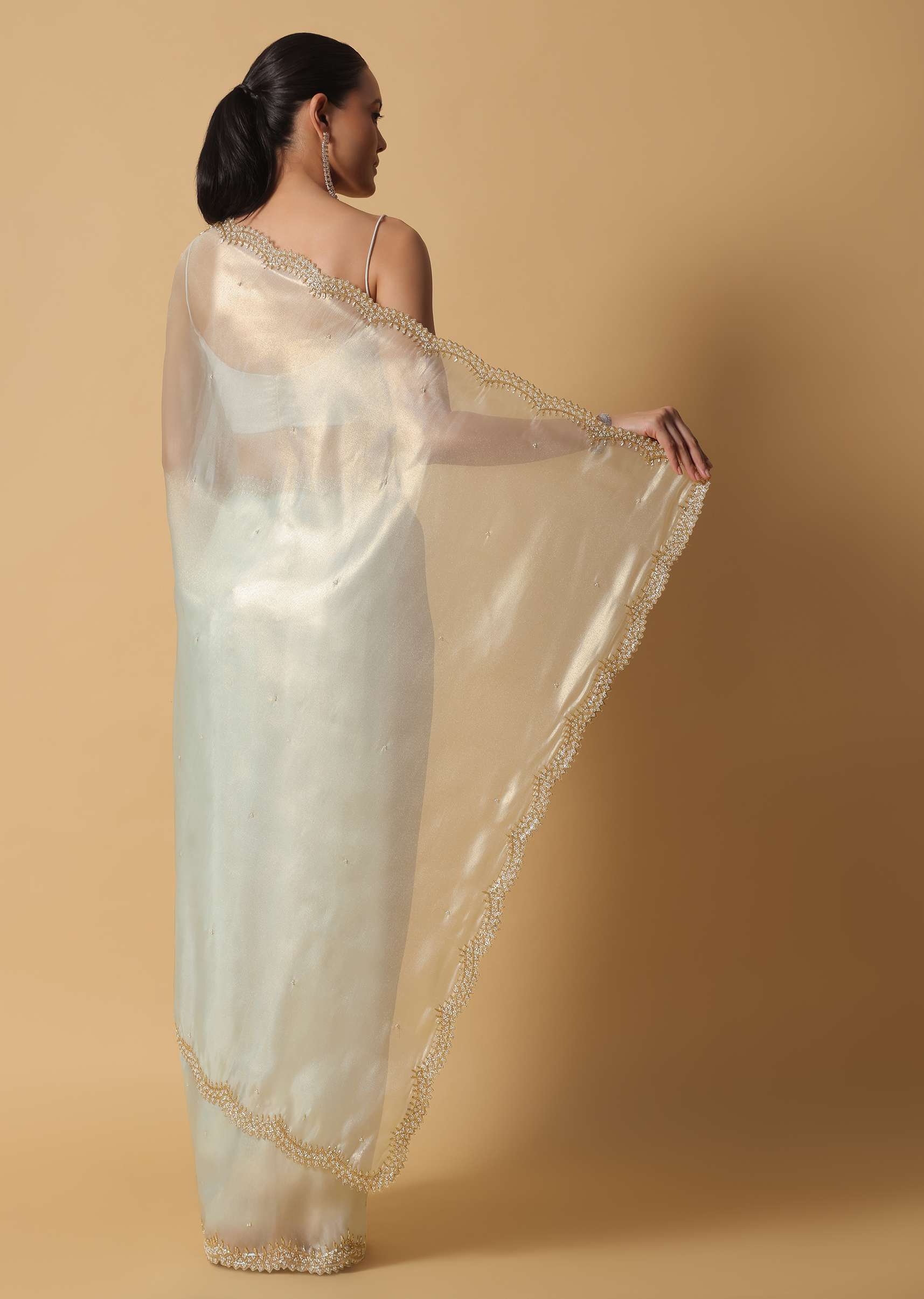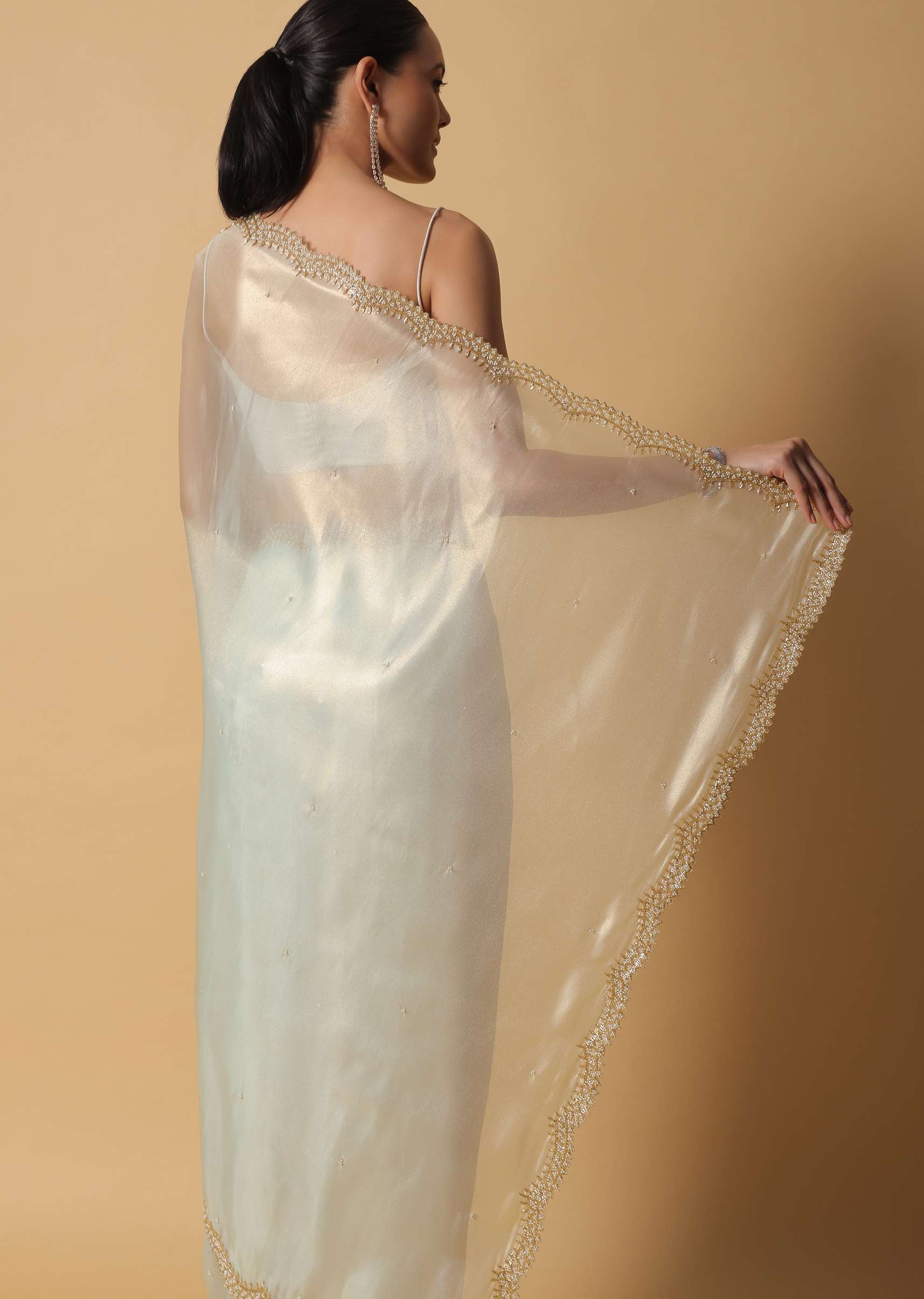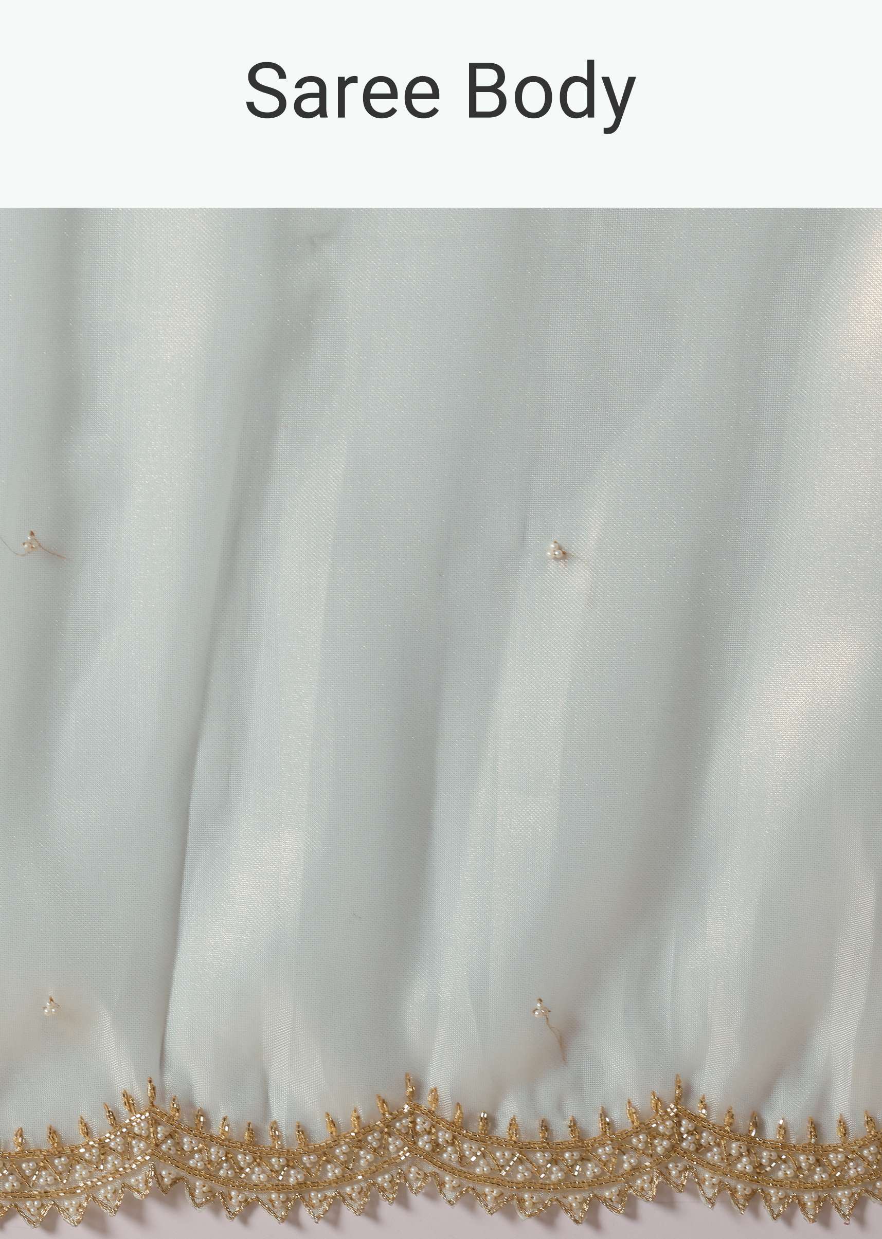 Pista Green Foil Saree In Tissue With Cut Dana Embroidered Borders