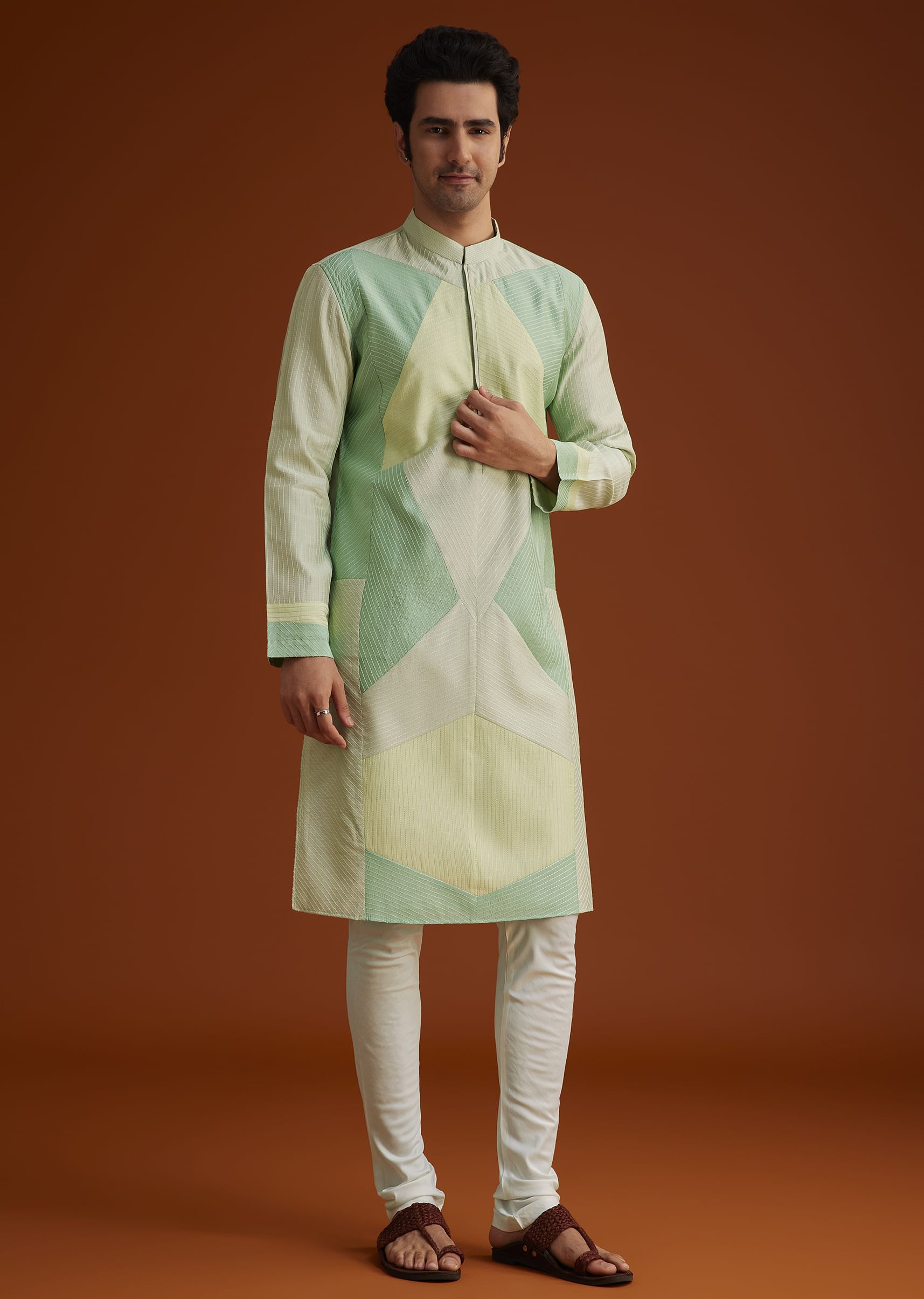 Pista Green Kurta Set In Contemporary Design