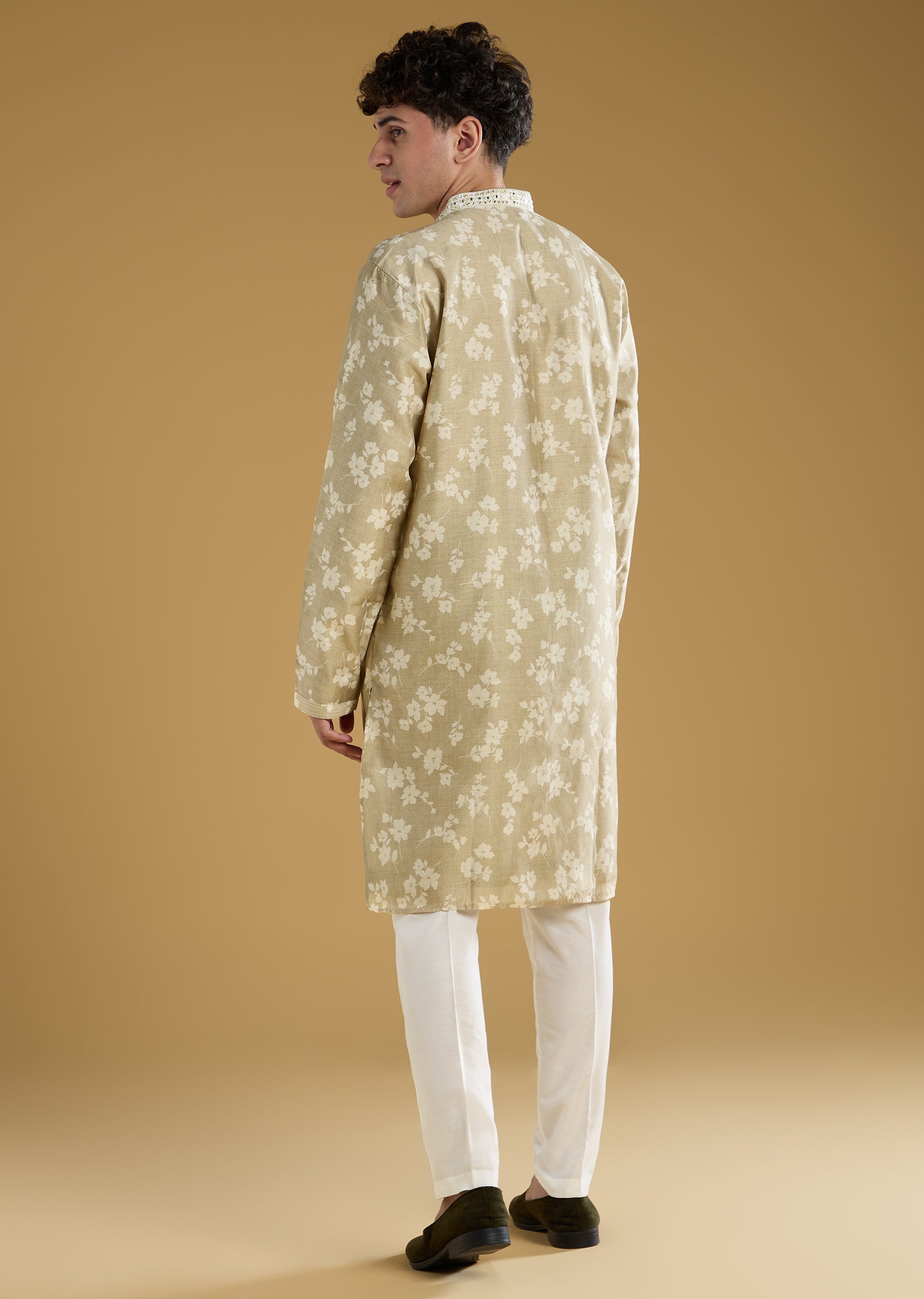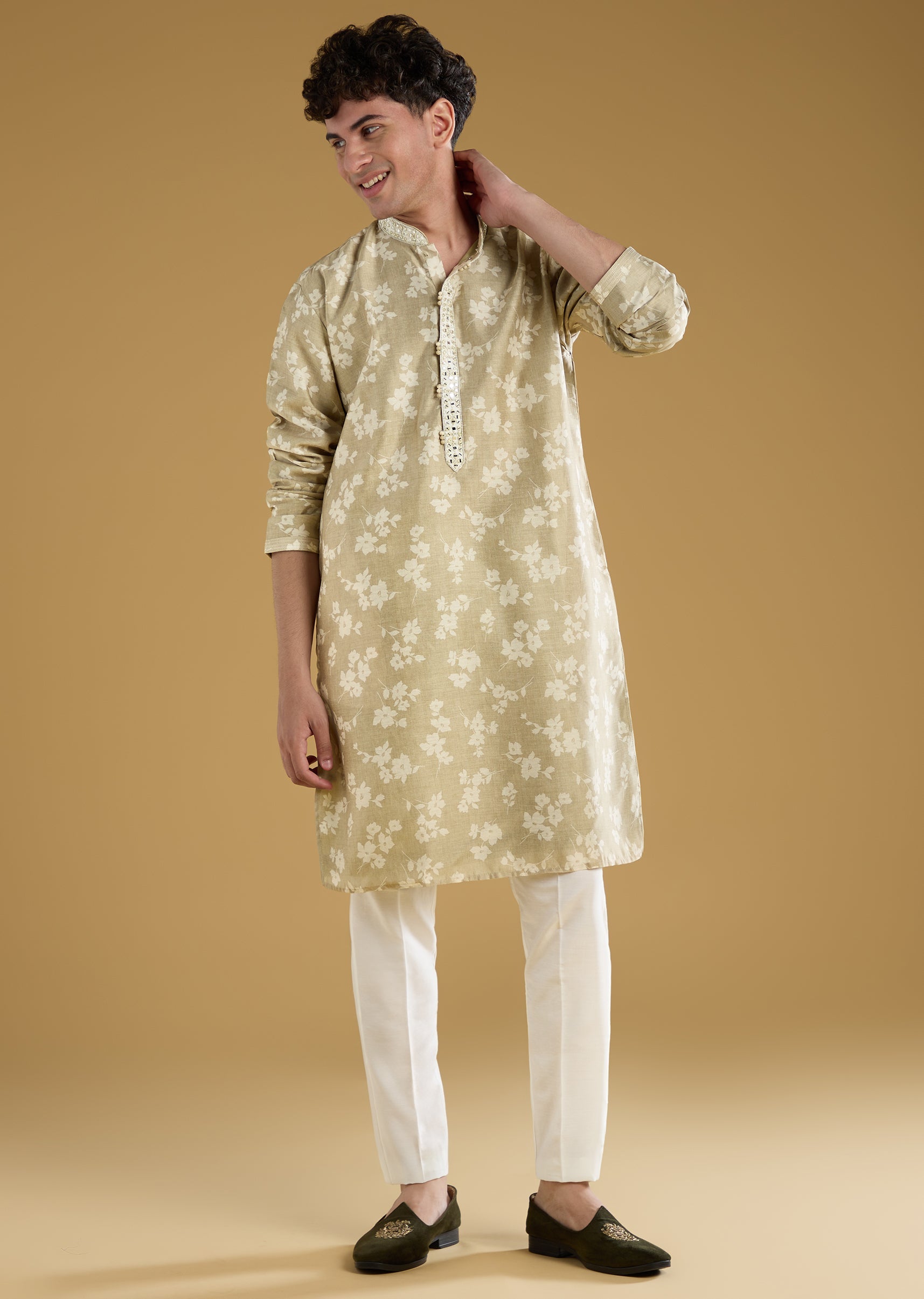 This pista green mens kurta set is crafted in premium silk fabric featuring intricate thread and mirror detailing for a subtle festive look. Designed with full sleeves and a mandarin... More Product Details