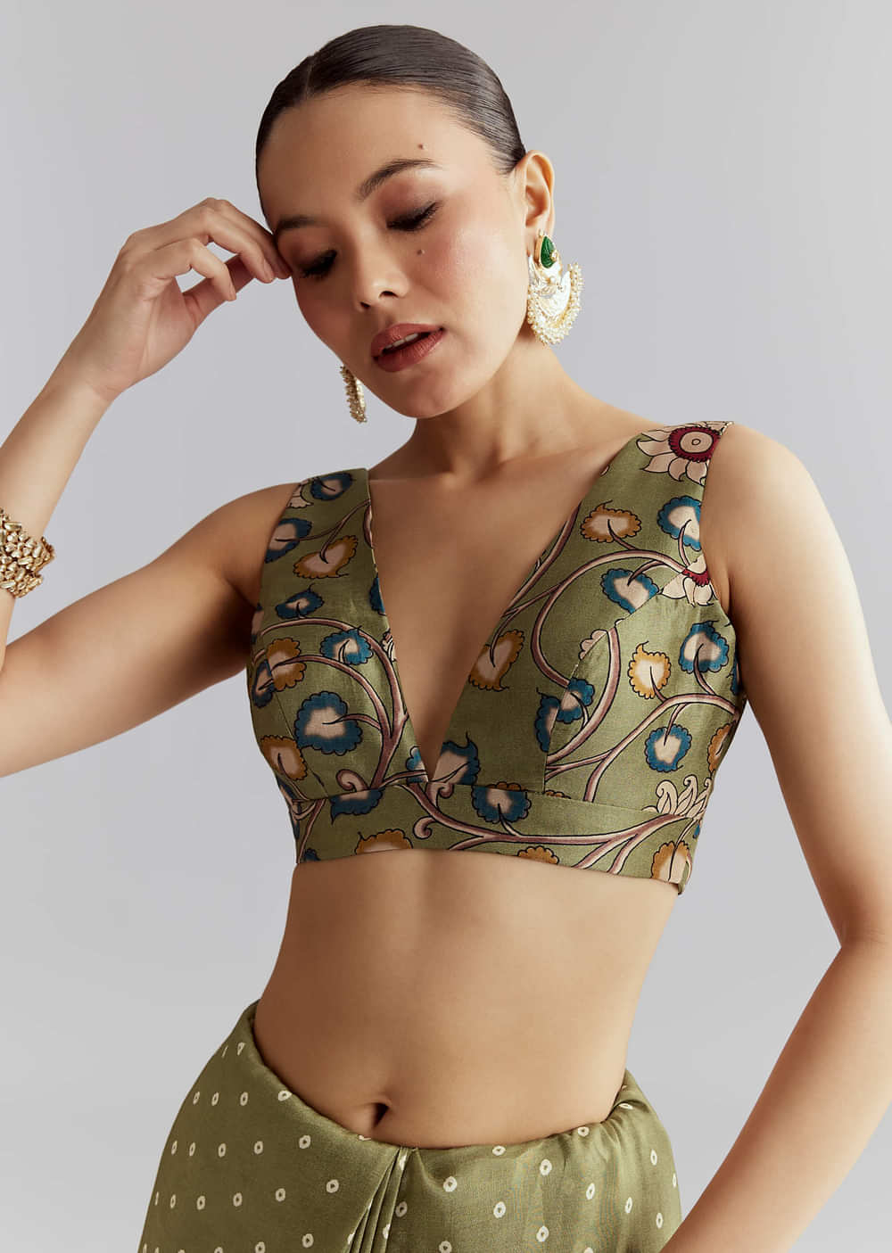 Fit Tips:The blouse should feel secure, while the muslin pleats stay light and the pallu glides without slipping.