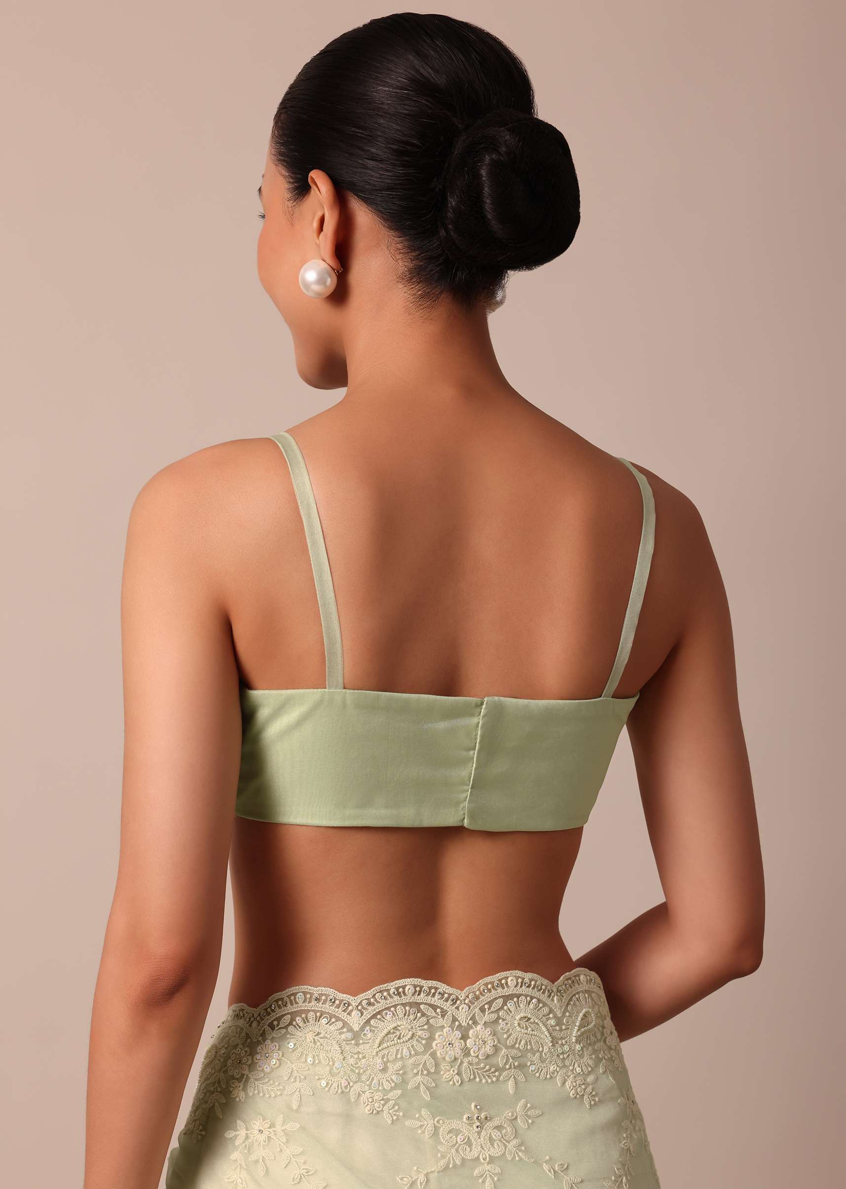 Strike a fashionable pose in this chic and elegant sheer green saree. Fabricated from organza silk it boasts of intricate chikankari work. Detailed with all over floral jaal motifs it is further accentuated with sparkly cutdana beaded border. Completed with an unstitched blouse piece this drape exudes grace and charm. Awarded As The Most Trusted Brand We'Re Delivering Styles You Love Just As Promised.