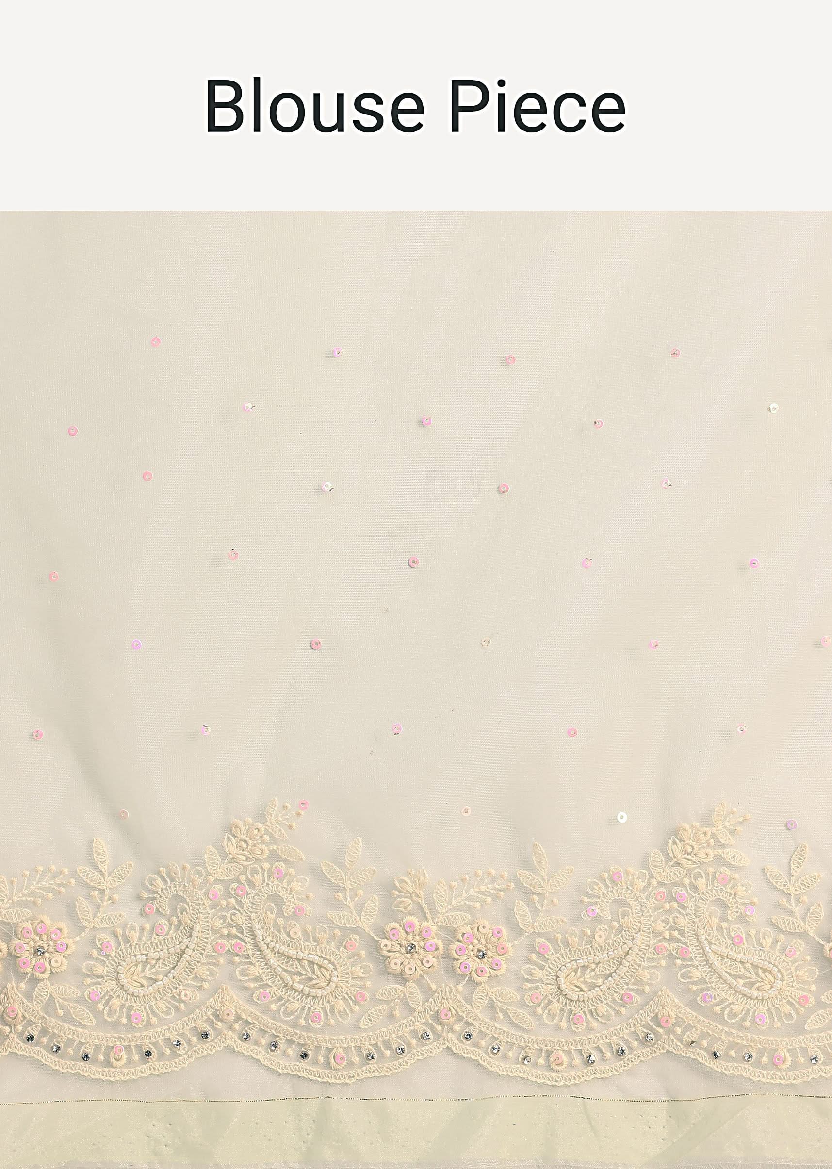 Baby Pink Chikankari Organza Silk Saree With Scallop Border And Unstitched Blouse Fabric