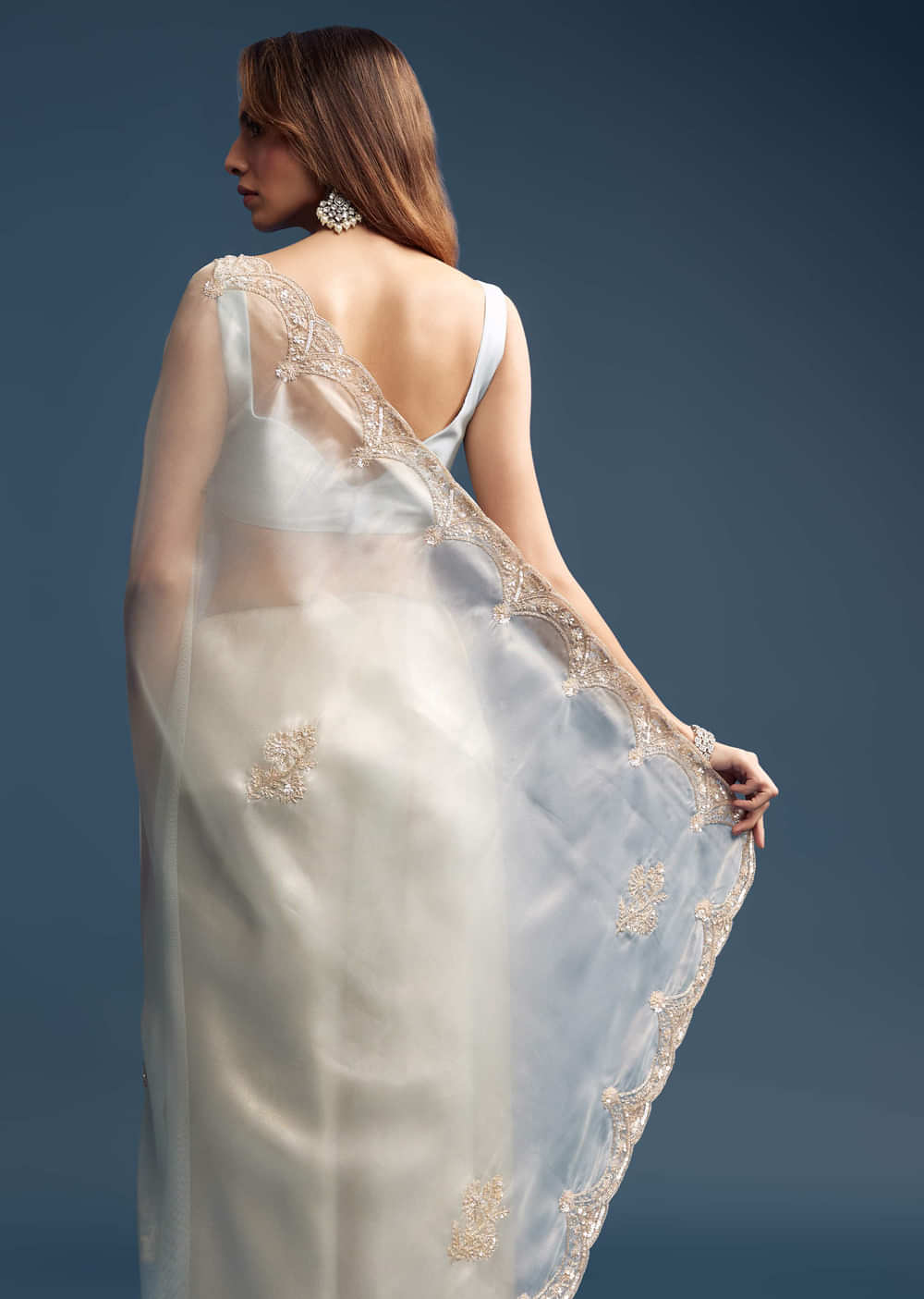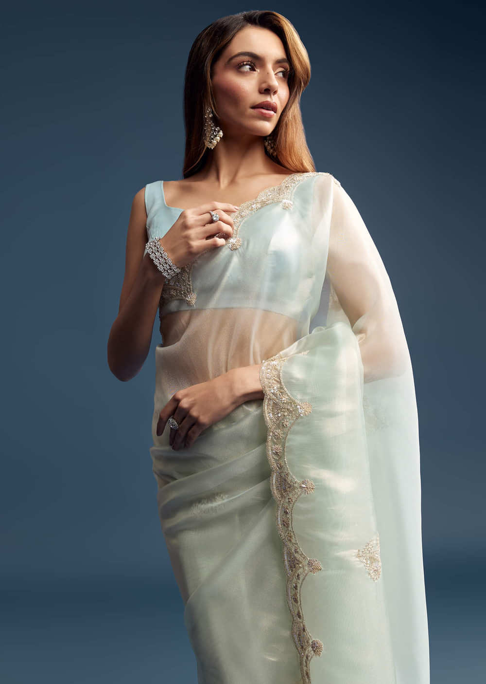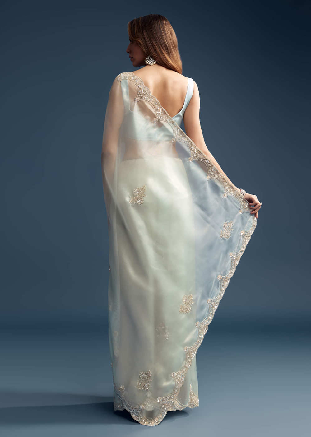 Powder Blue Tissue Saree With Cutdana Embroidery