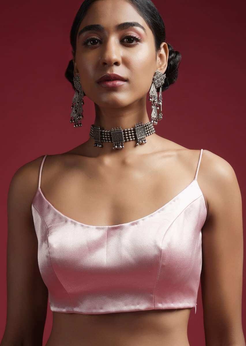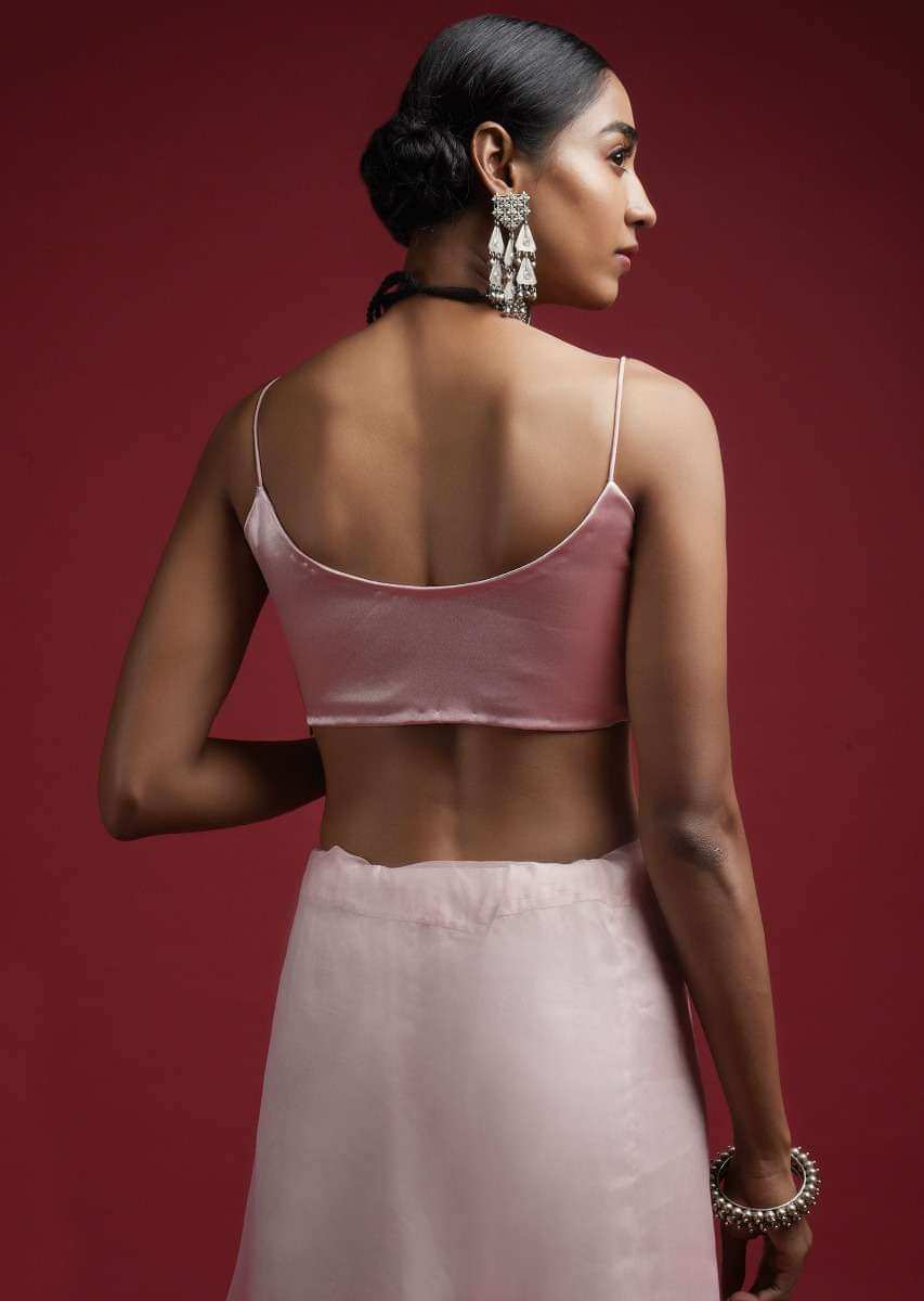 Powder Pink Blouse In Milano Satin With Spaghetti Straps On The Shoulders