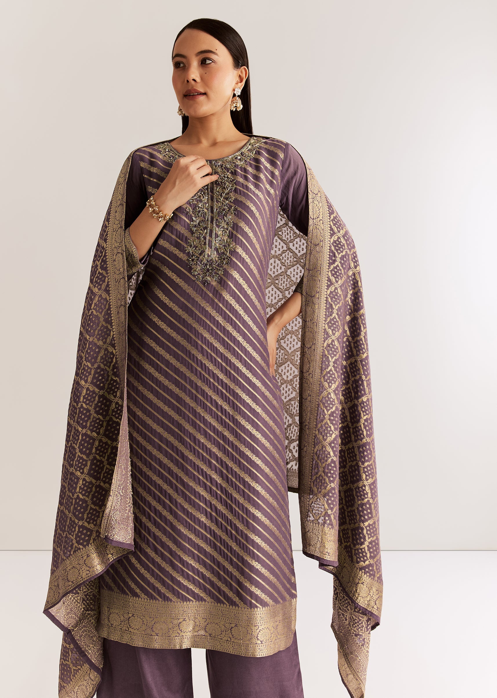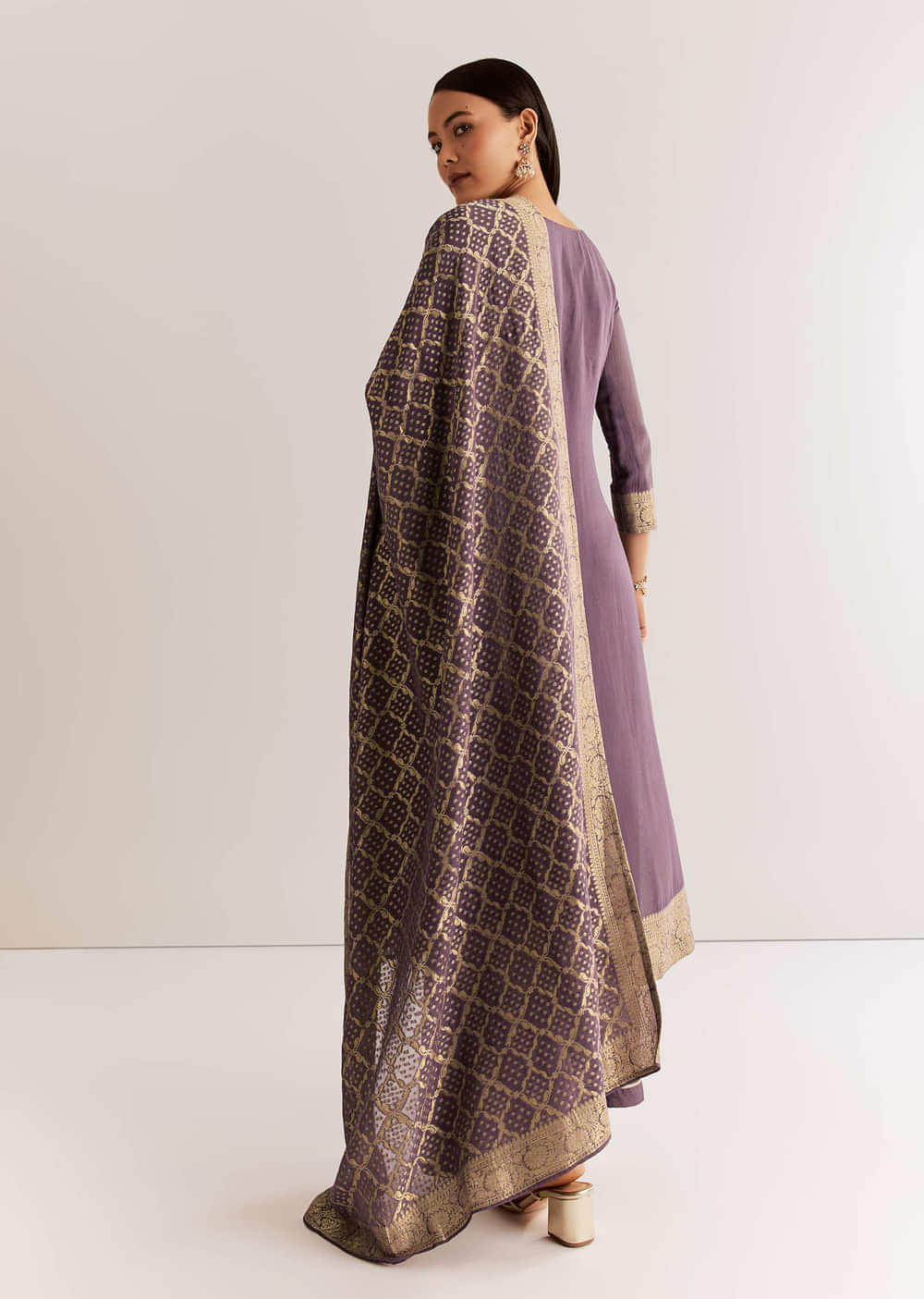Purple Banarasi Georgette Kurta Set With Zardosi And Cutdana Work