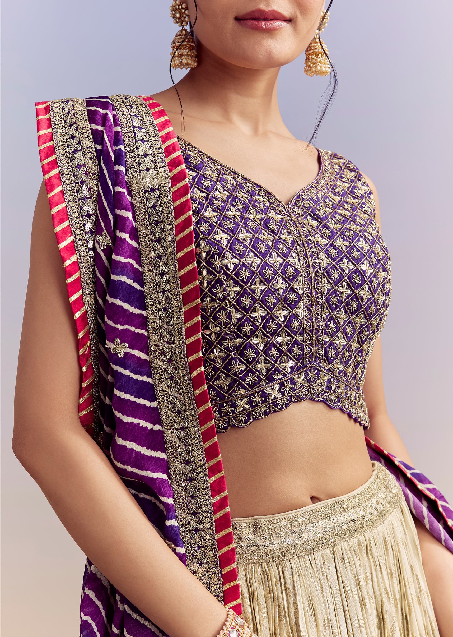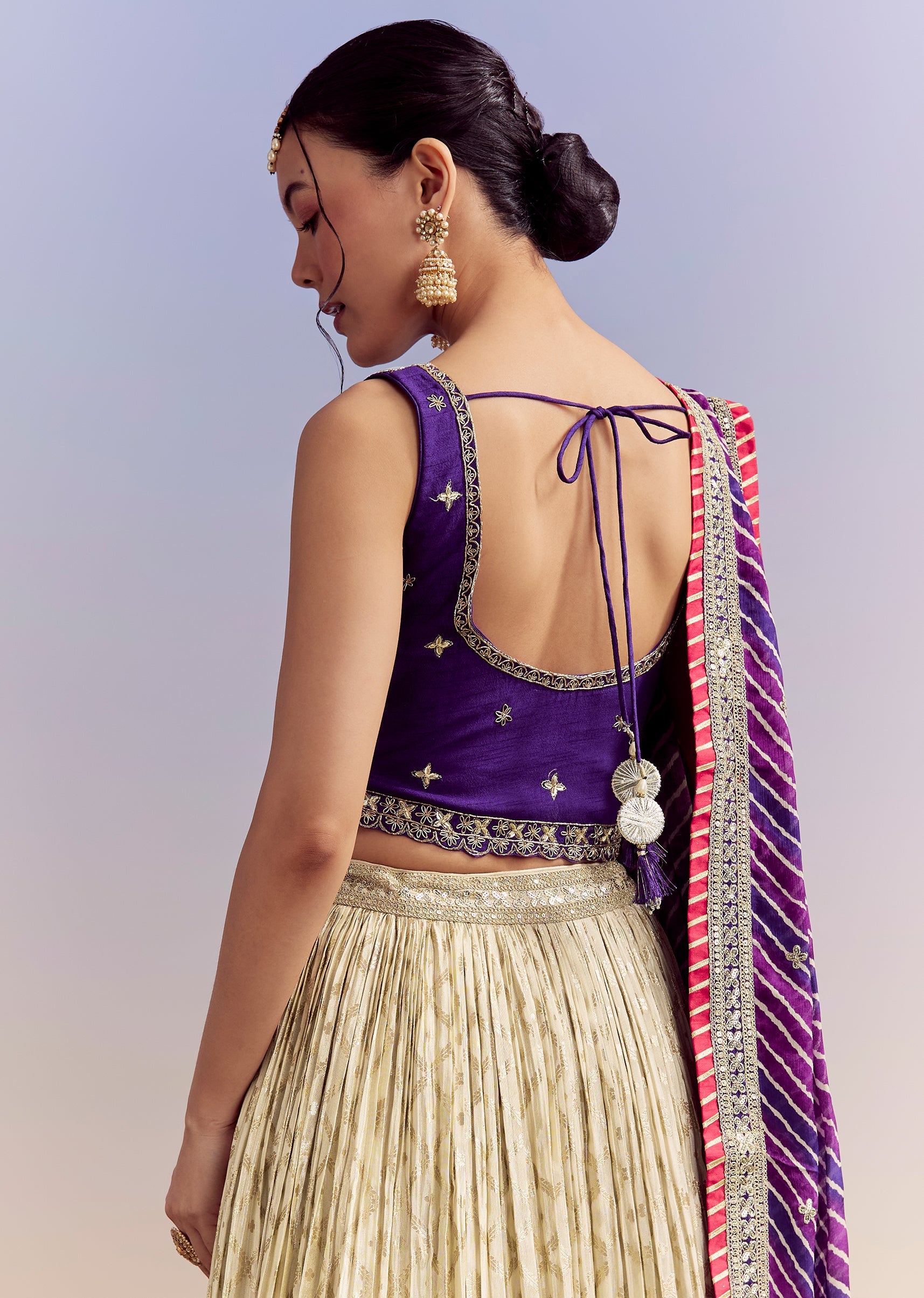 Purple Brocade Silk Bridesmaid Lehenga With Leheriya Dupatta And Zardosi Work