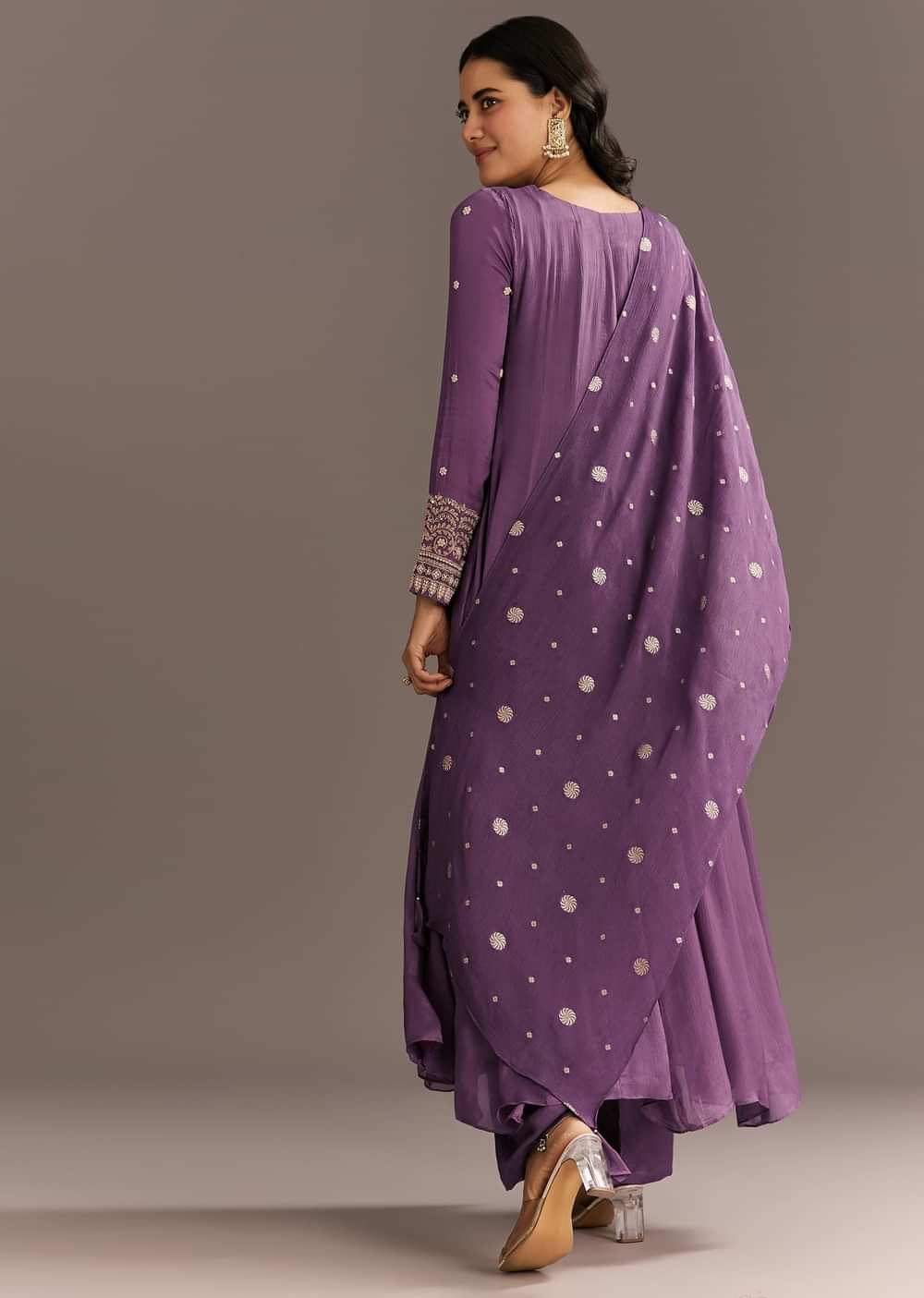 Purple Chinon Kurta With Zardosi Sleeves And Butti Dupatta