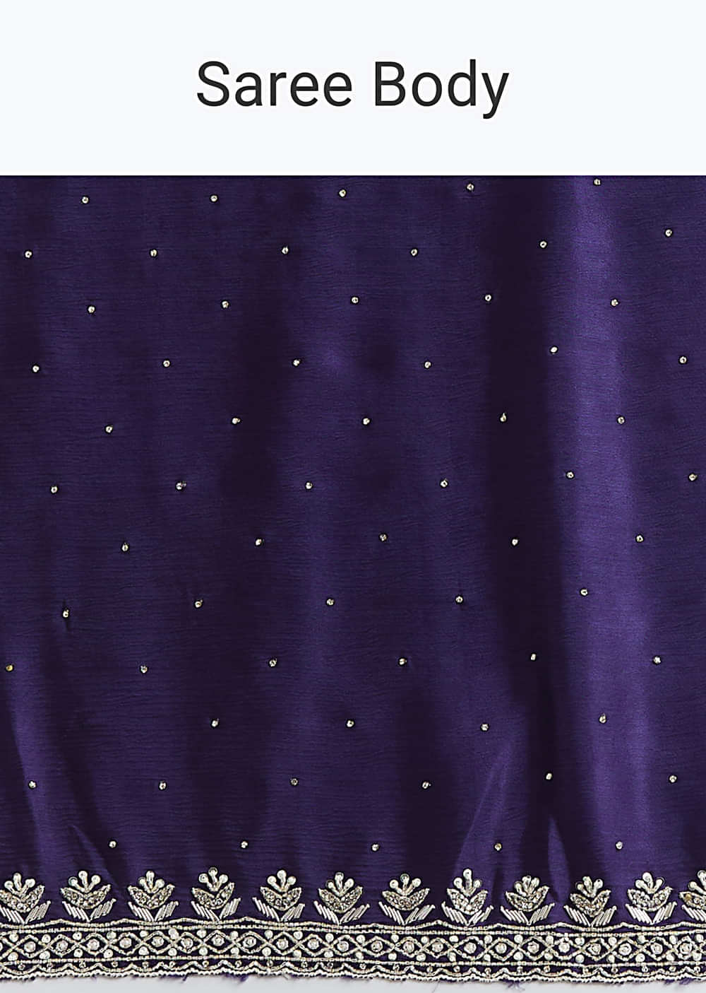 Purple Chinon Saree With Cutdana And Stone Embroidery