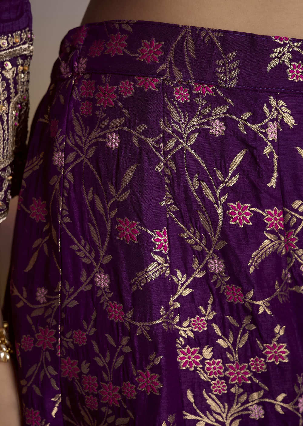 Purple Dola Silk Palazzo Suit With Heavy Embroidery