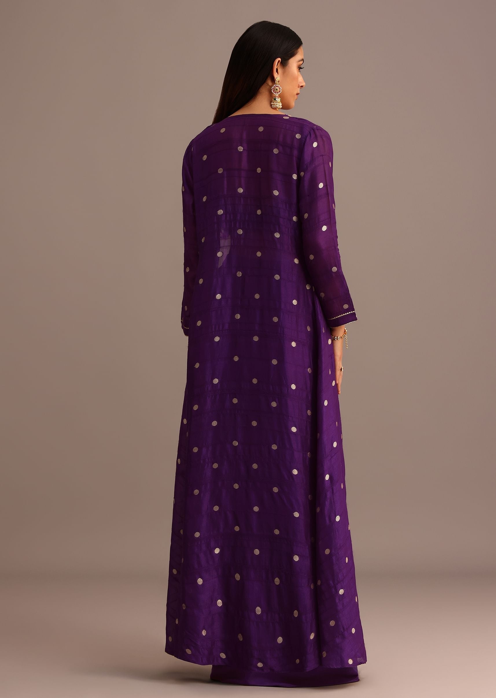 Purple Embroidered Croptop With Drape Skirt And Tussar Jacket