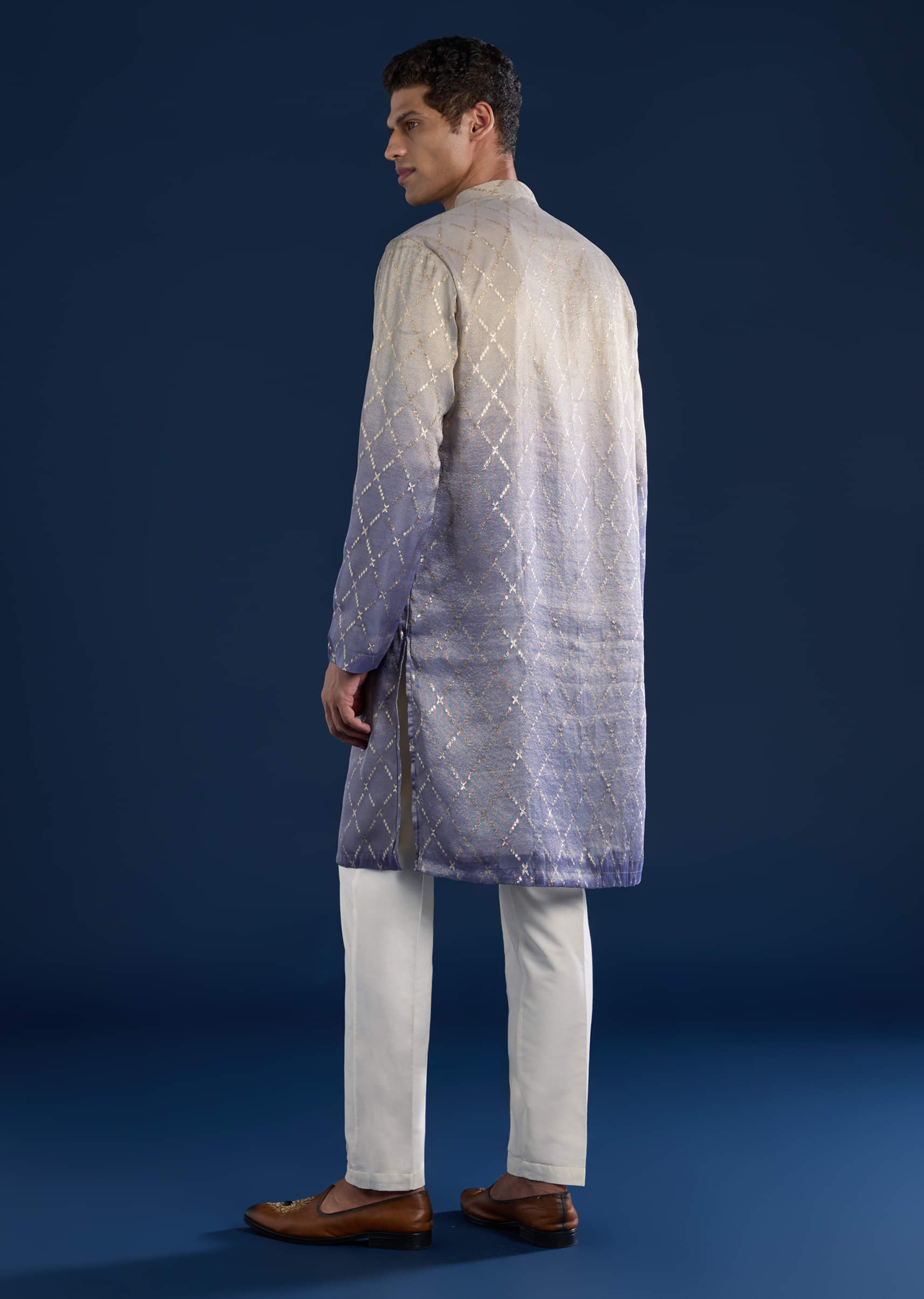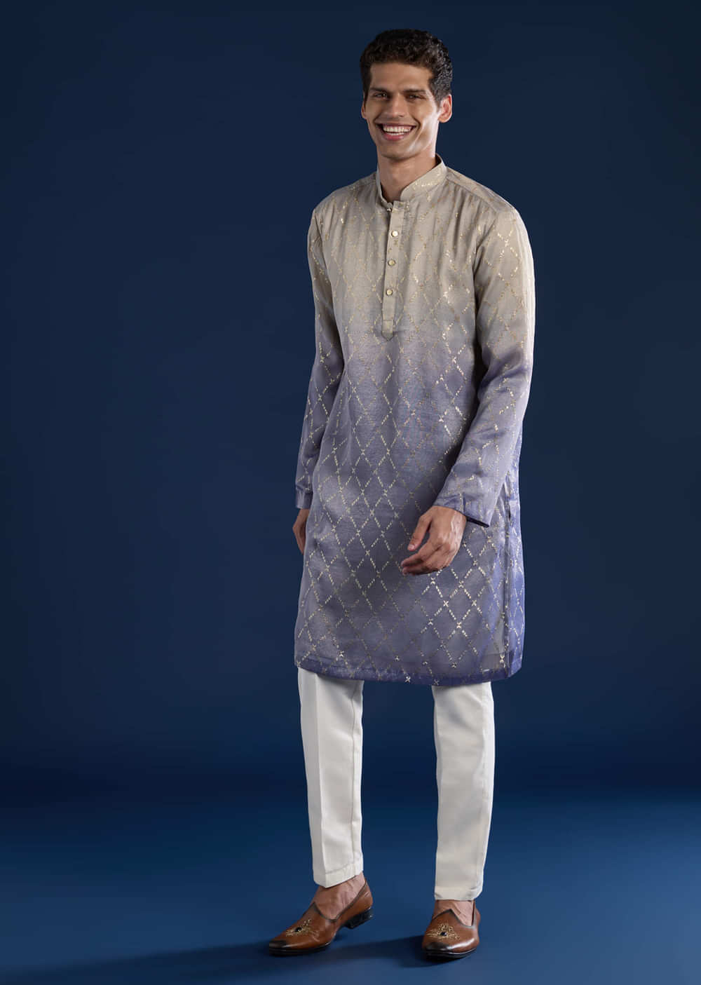 Fit Tips:Opt for a tailored fit through the shoulders and chest to highlight the kurta’s structured drape and refined foil detailing.