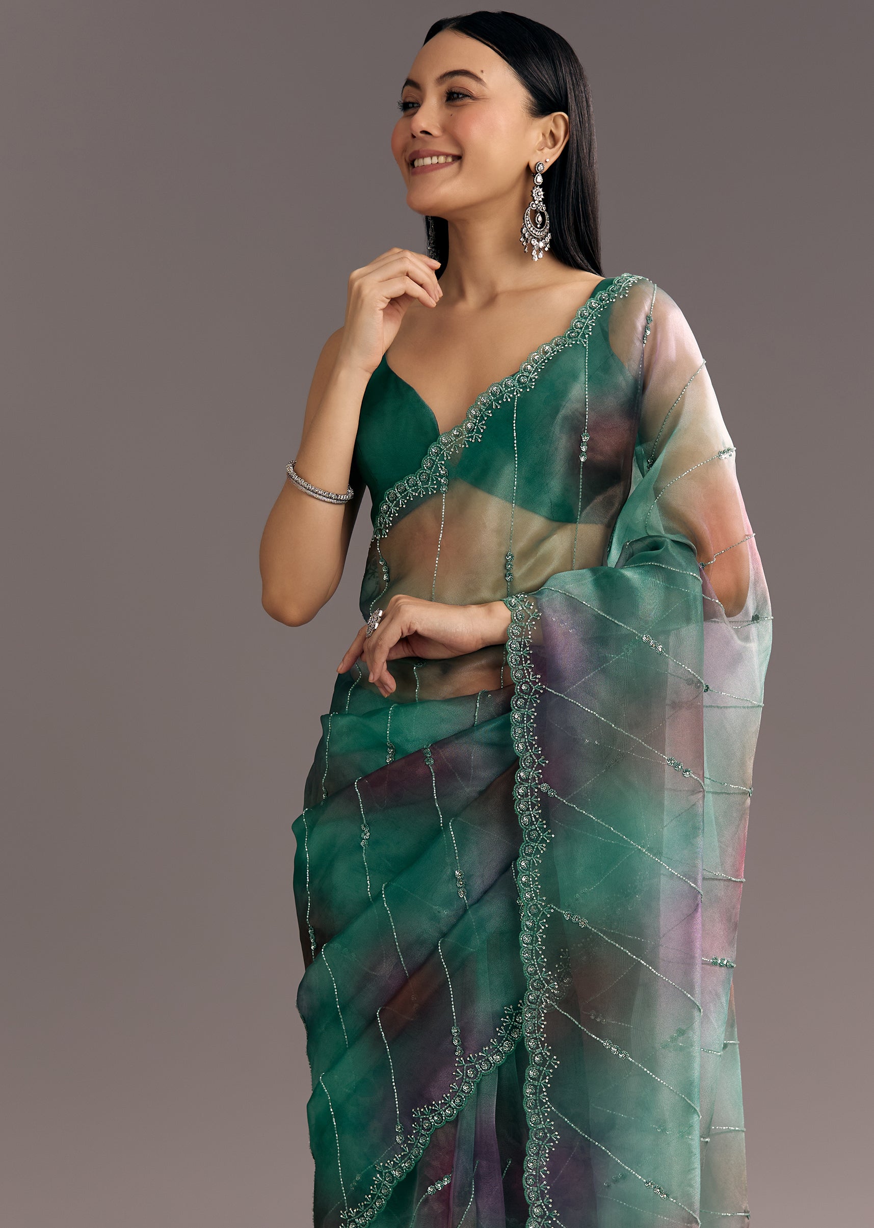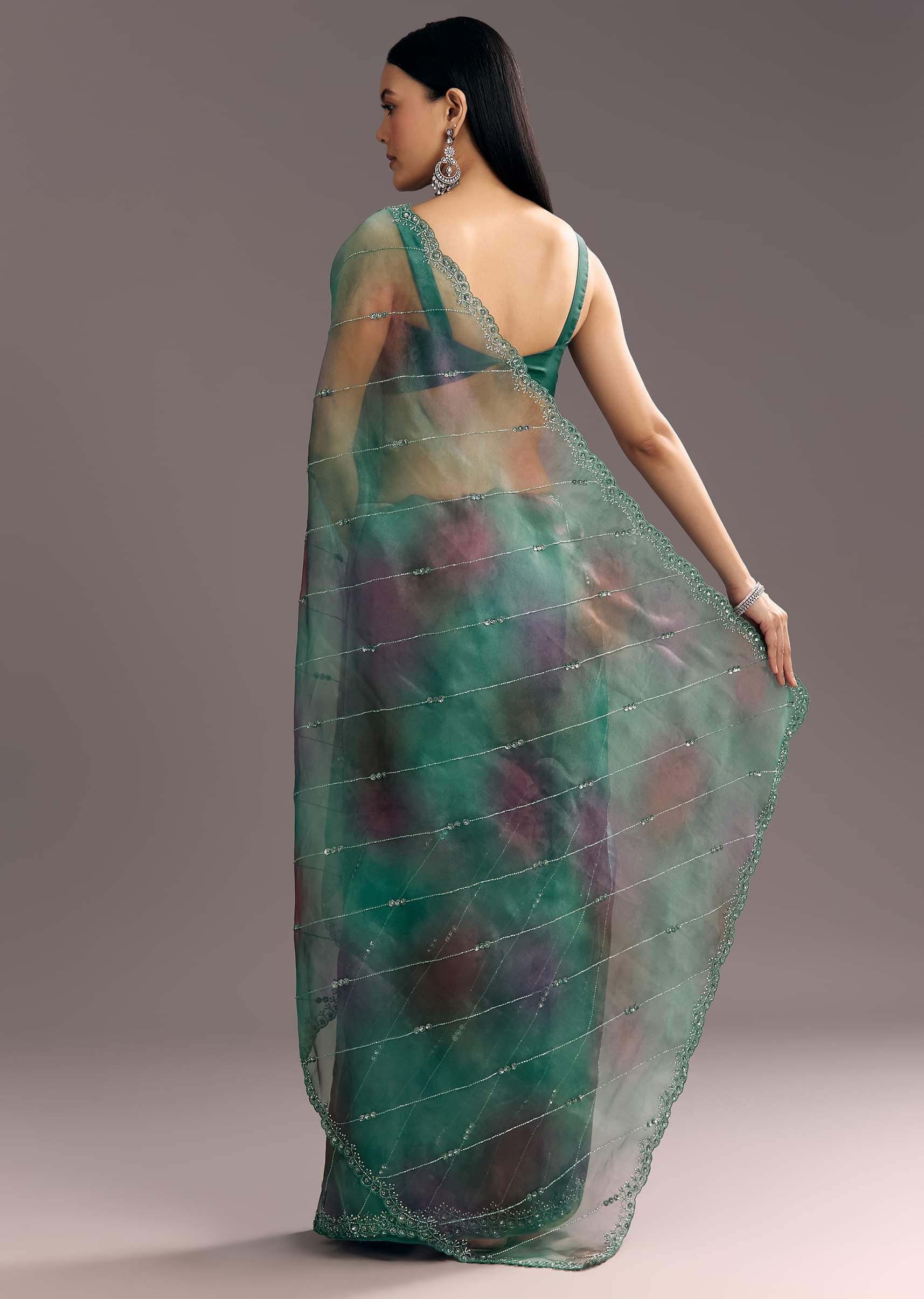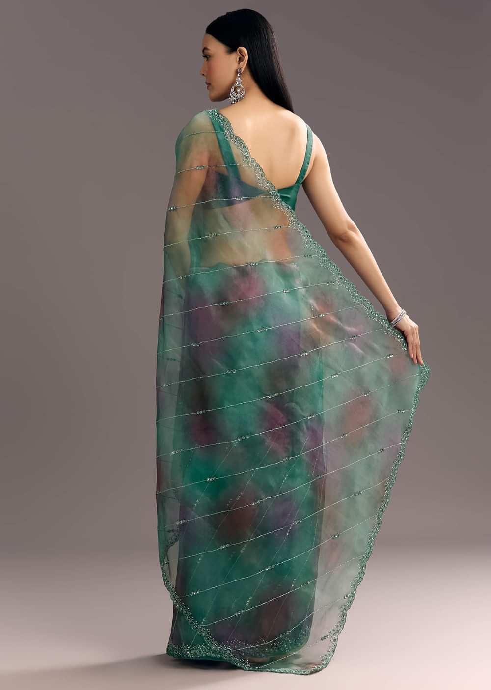 Purple Green Shaded Organza Saree With Cutdana Sequin Embroidery