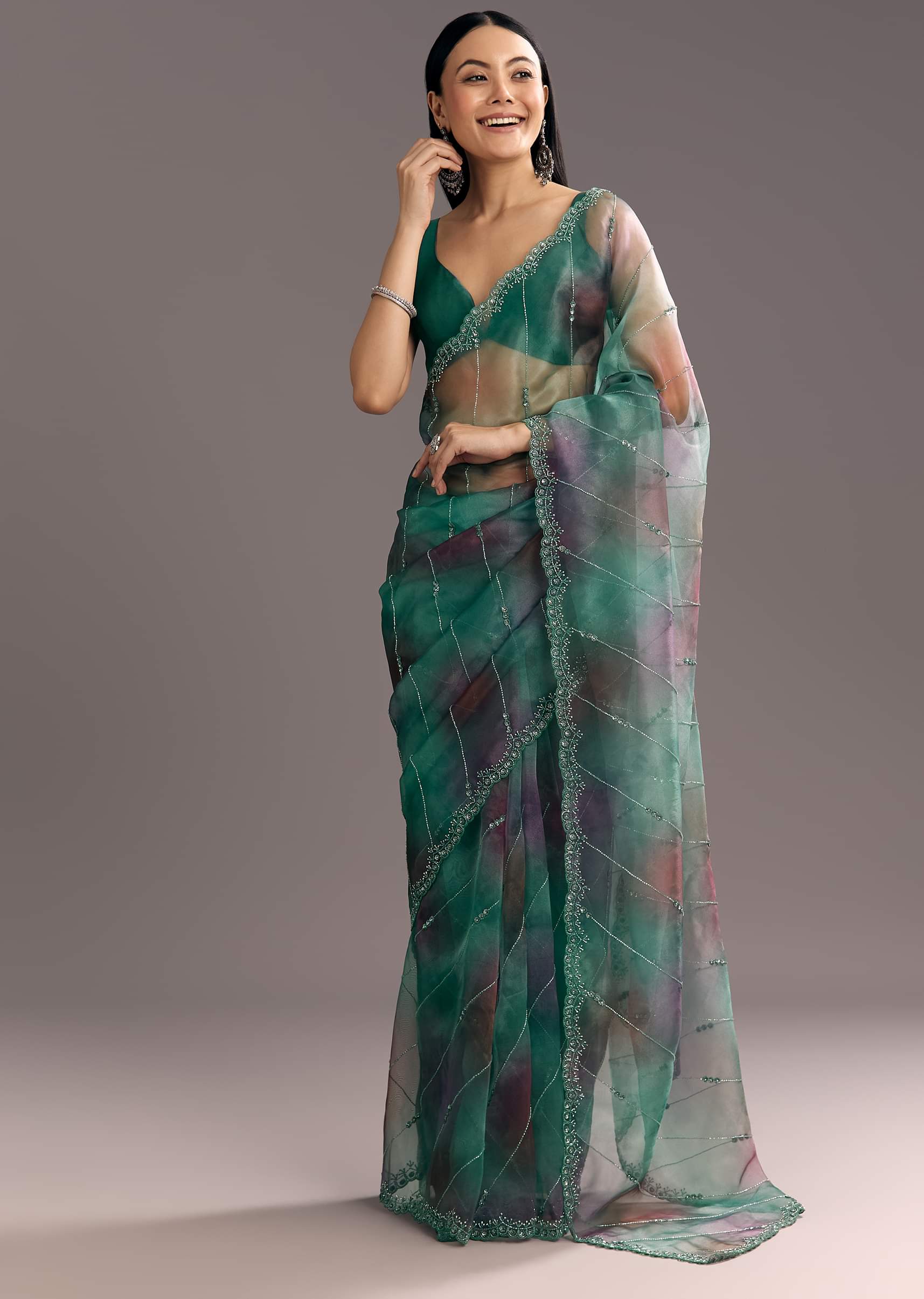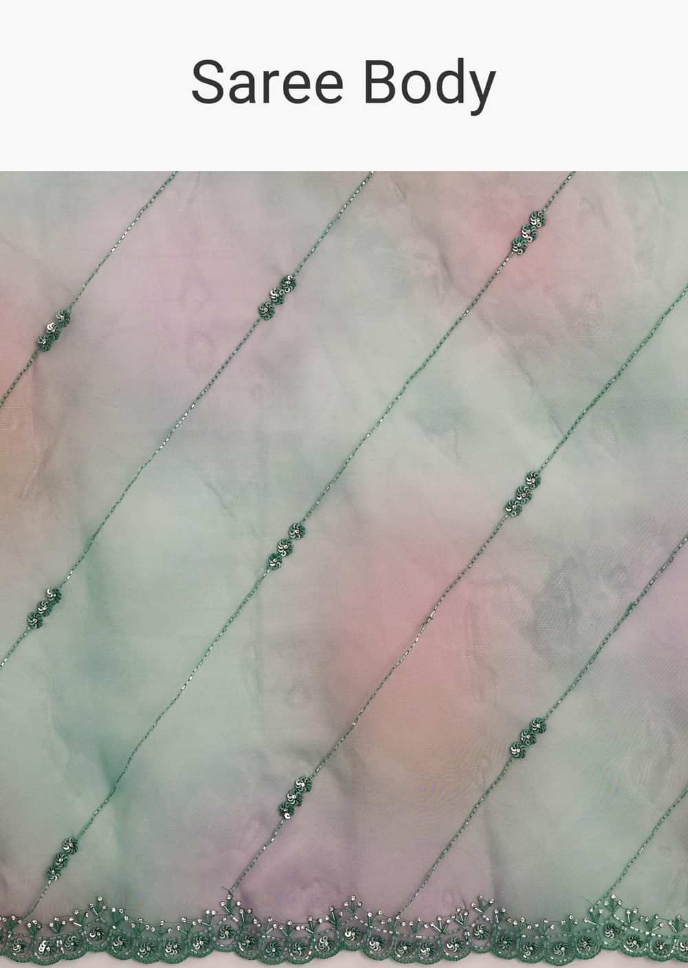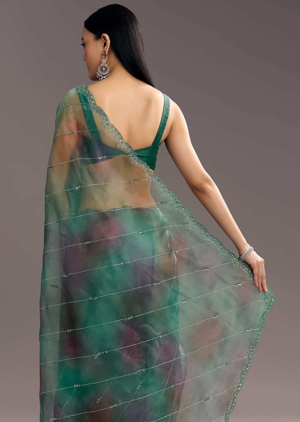 Purple Green Shaded Organza Saree With Cutdana Sequin Embroidery