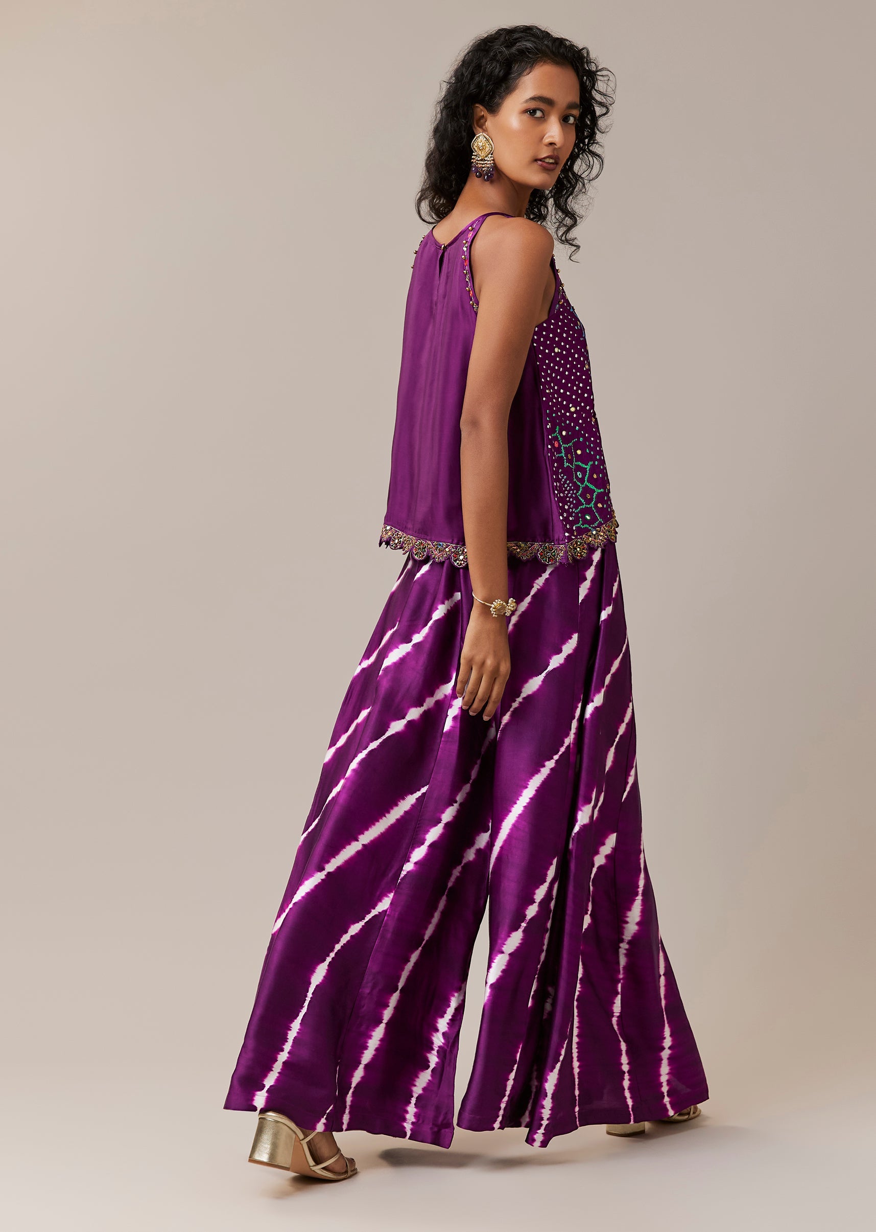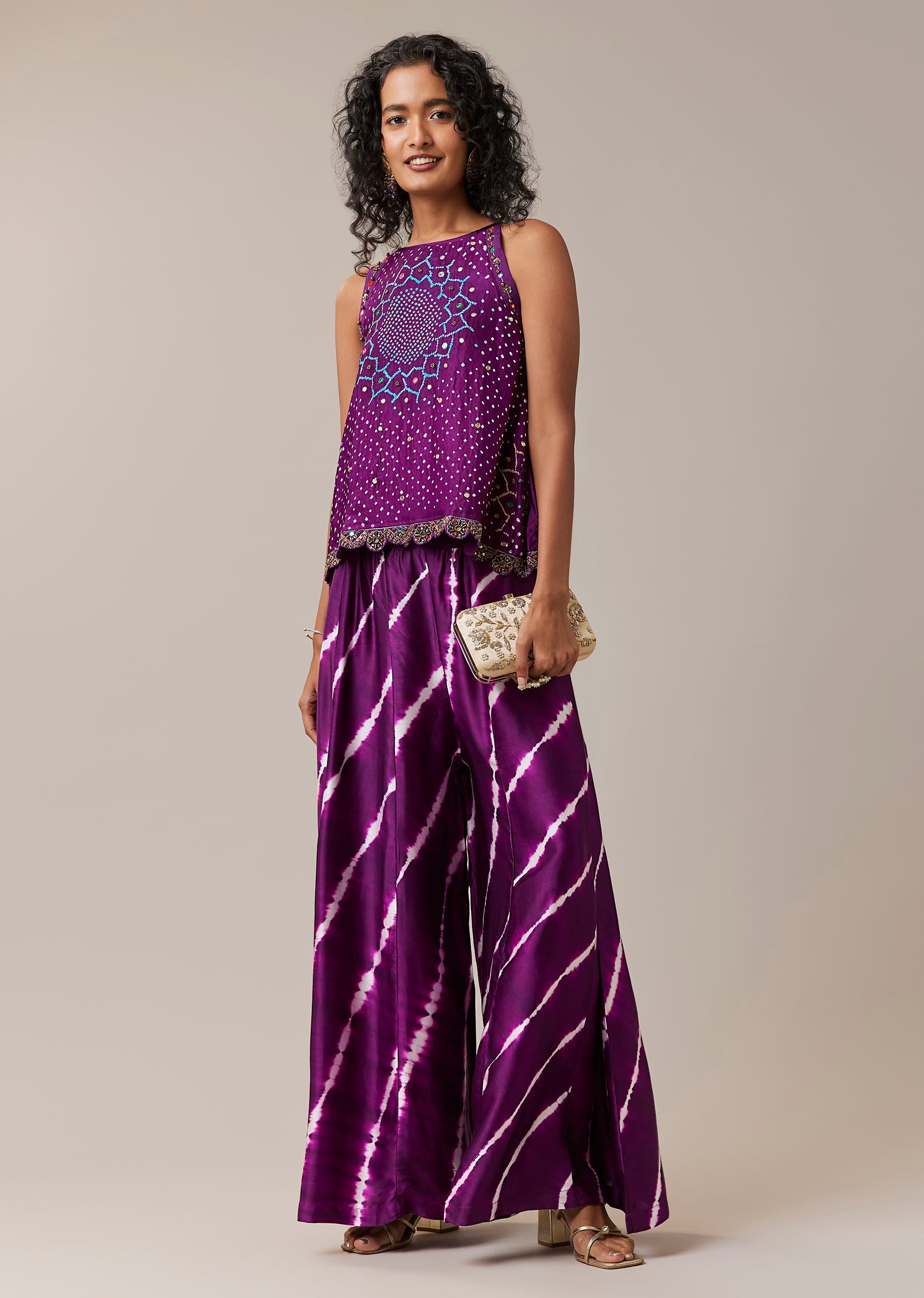Purple Hand Dyed Bandhani Top and Pant Set with Sequins