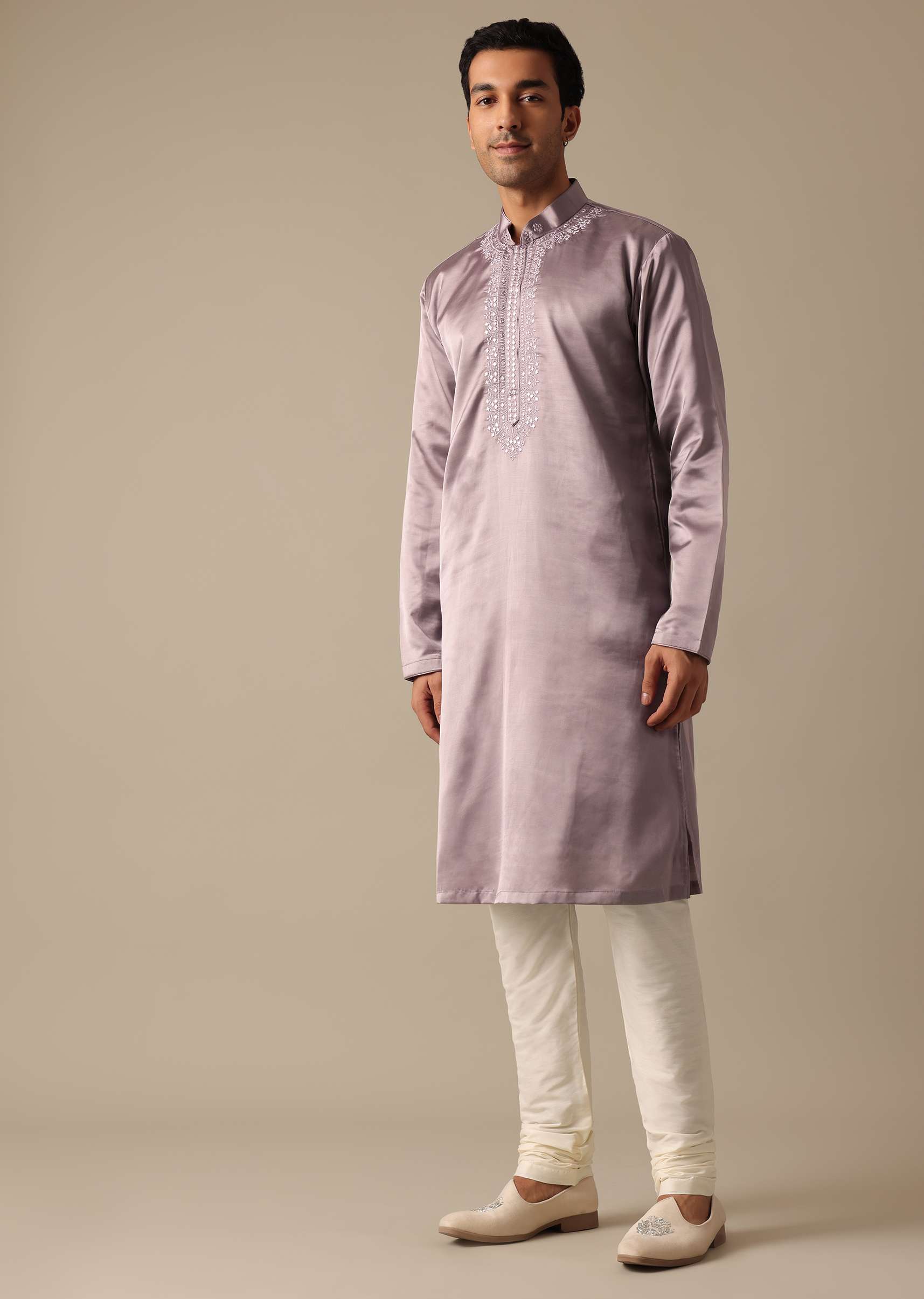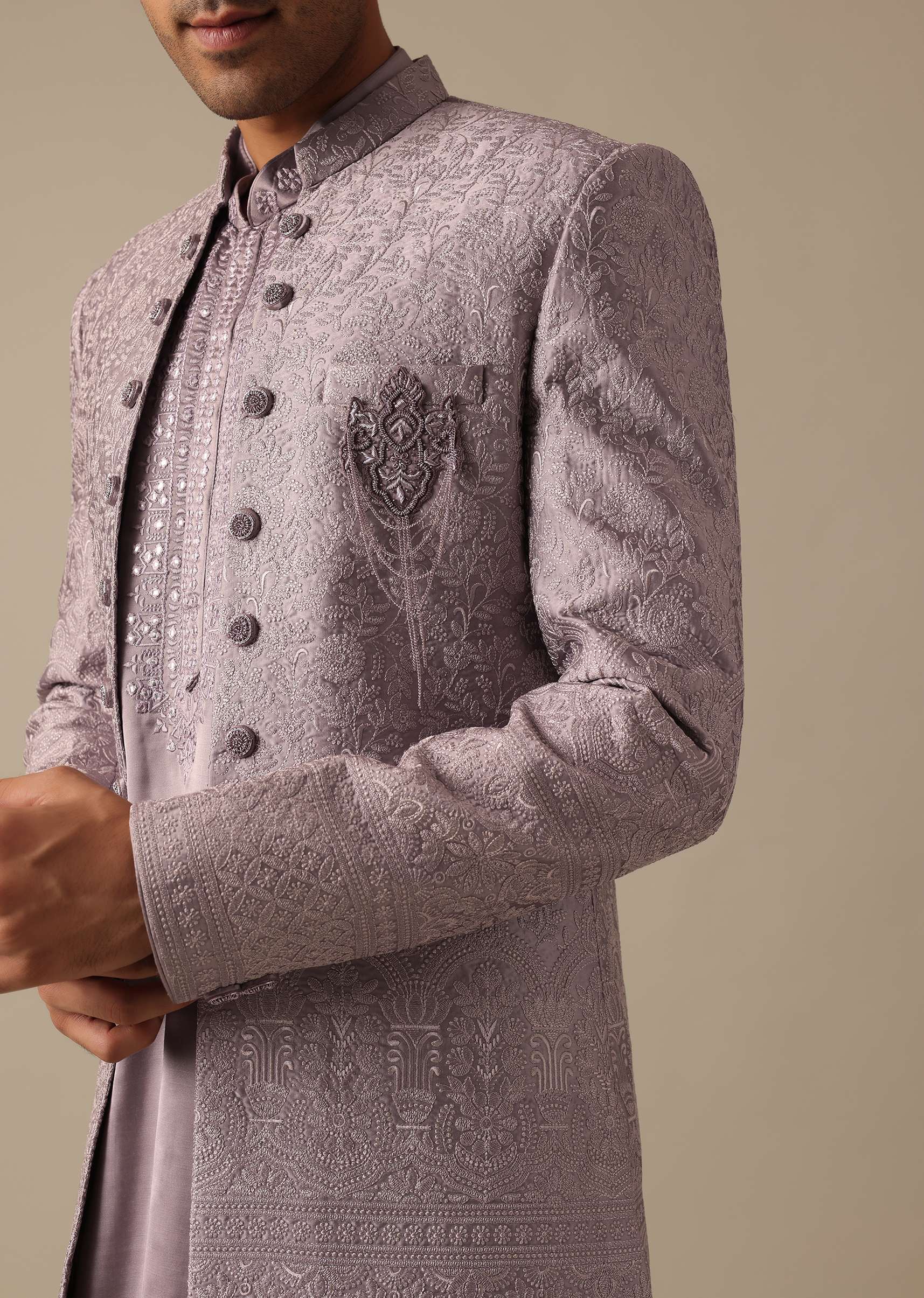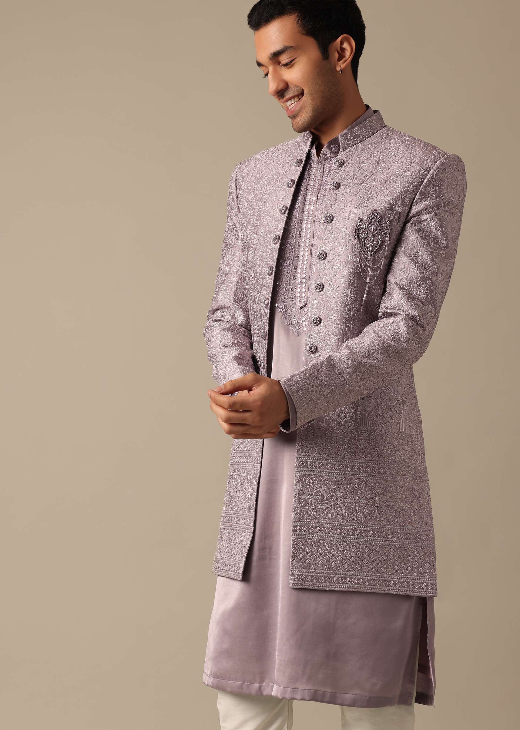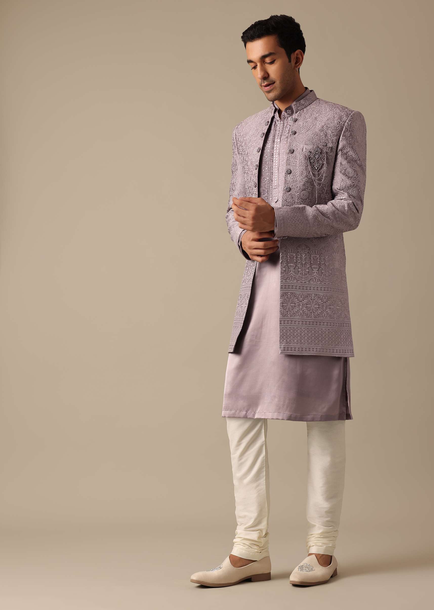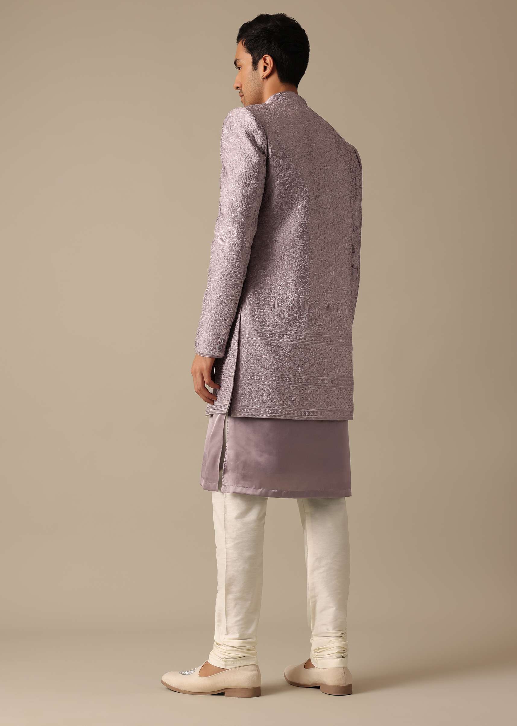 Purple Indo Fusion Sherwani Set In Satin Silk