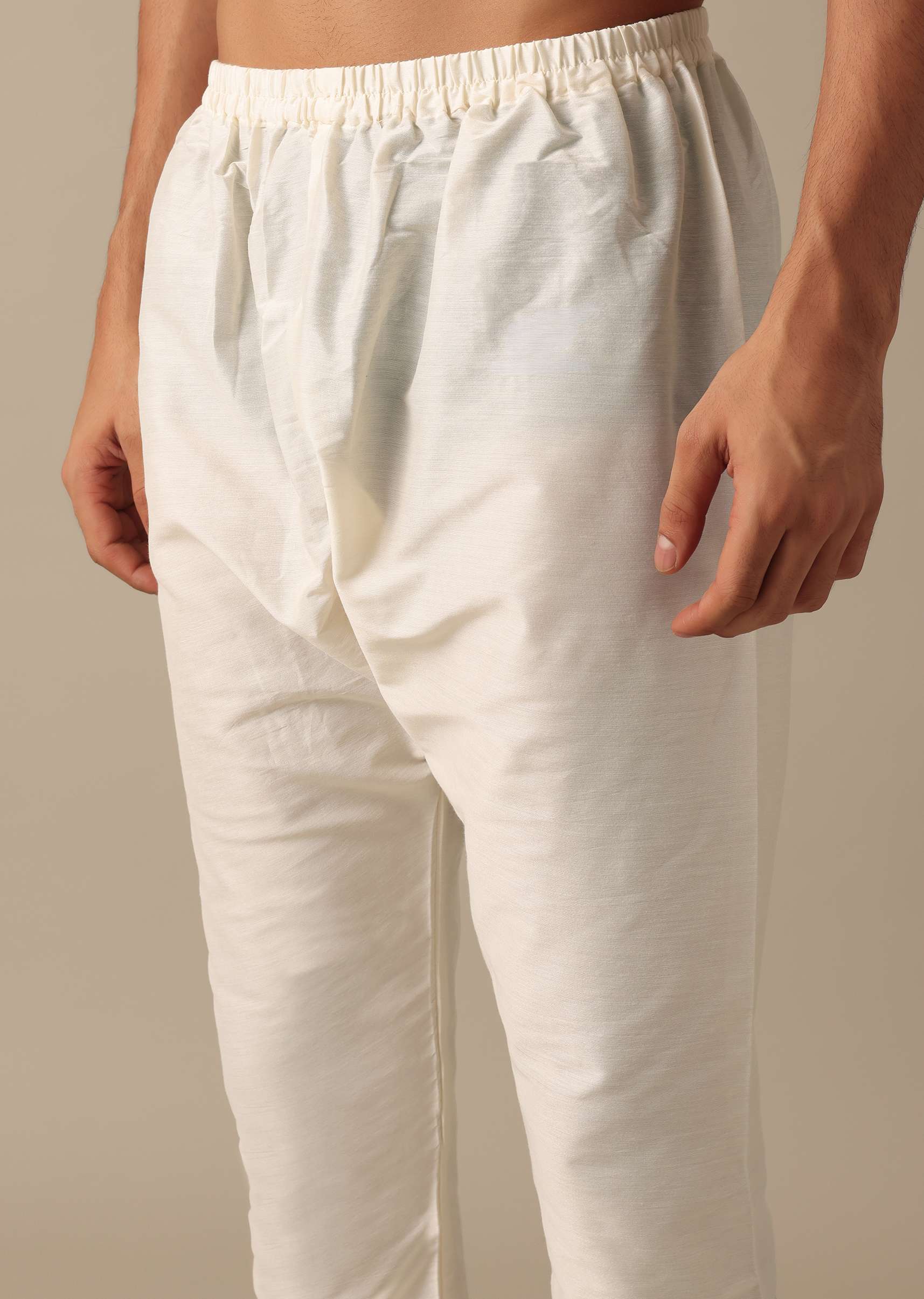 Elevate your ethnic style quotient with this sherwani set. Epitome of luxury, it is fabricated from satin silk. Paired with a Mandarin collar kurta, it boasts of intricate embroidery. Featuring... More Product Details
