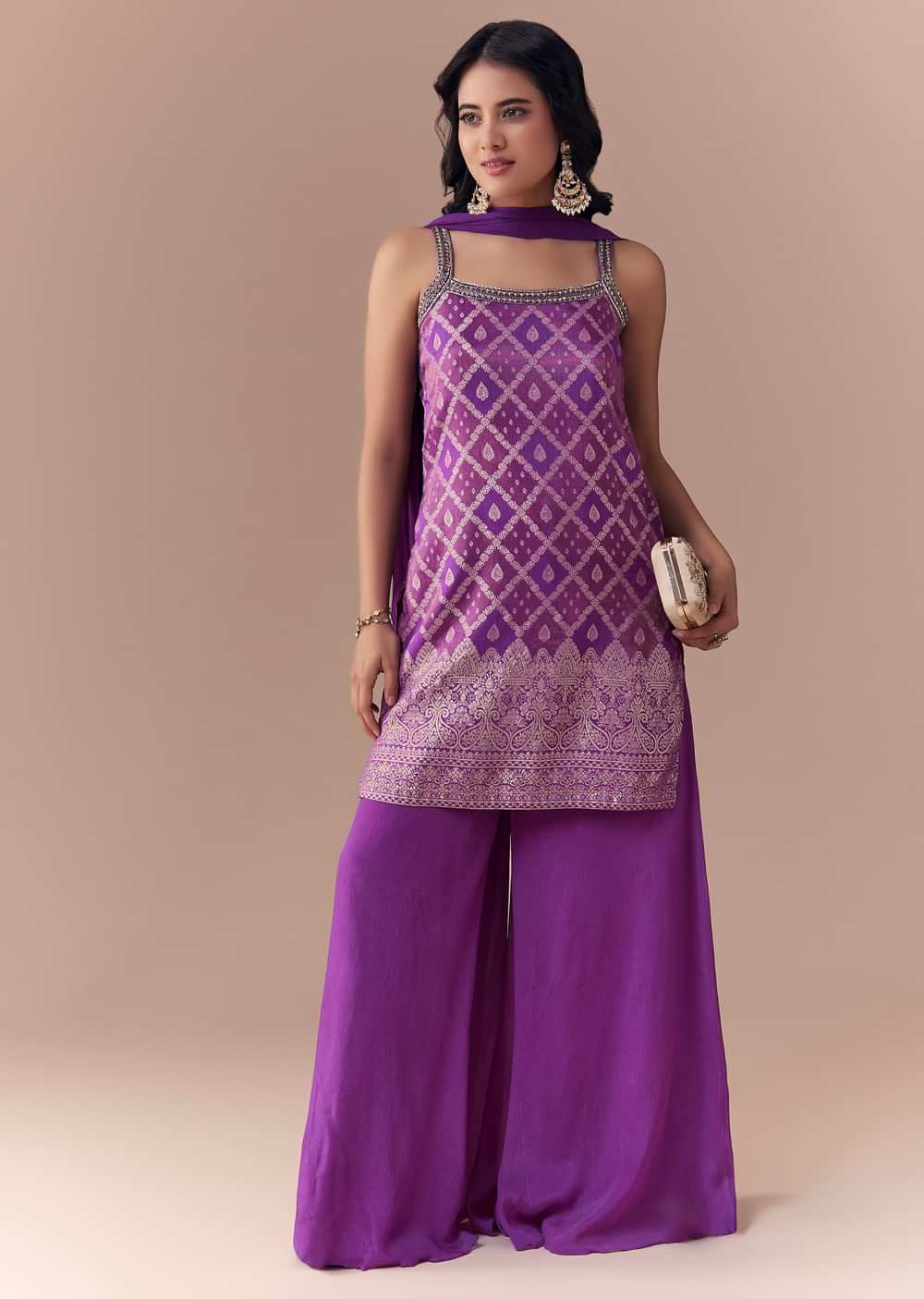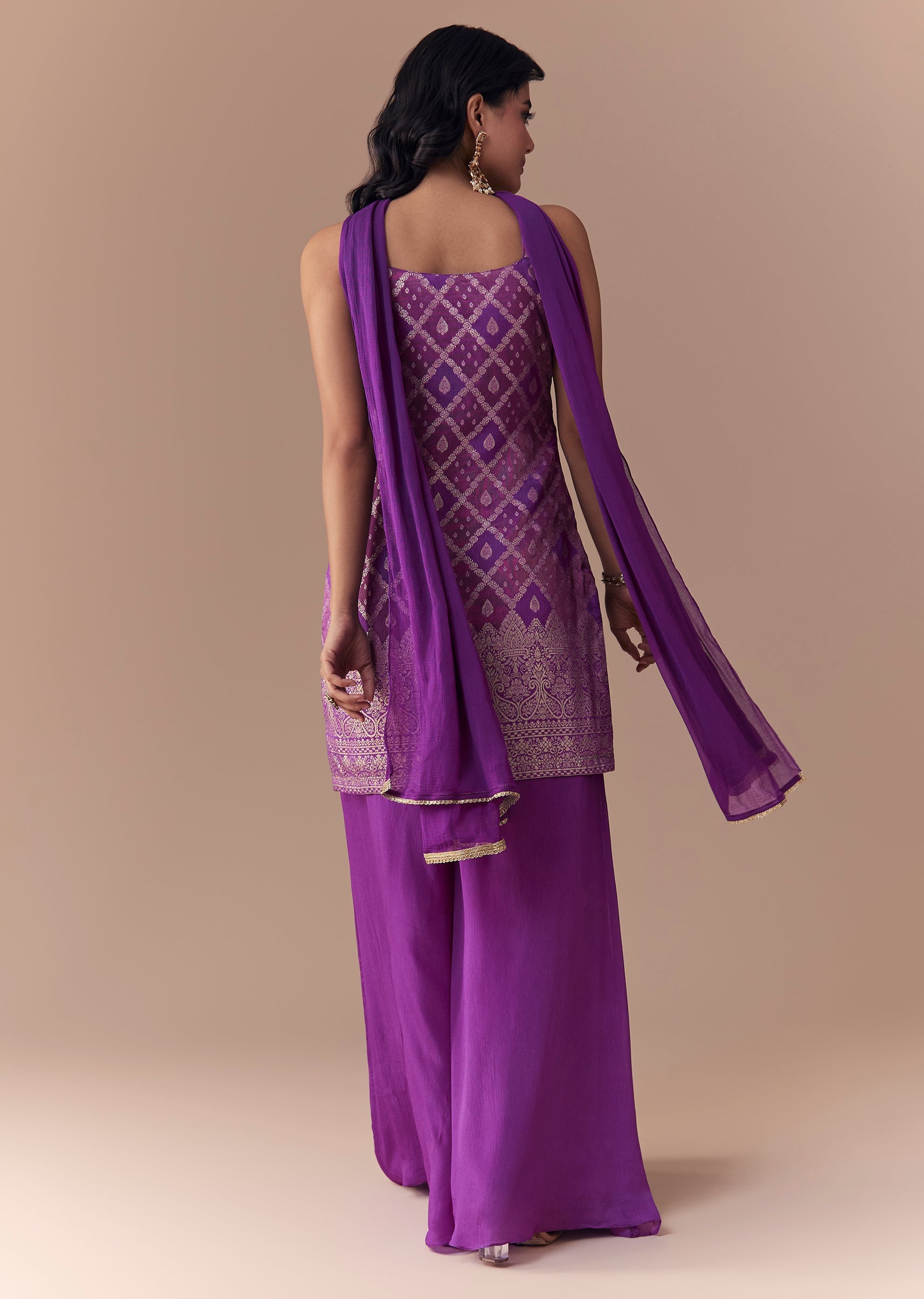 Purple Jacquard Woven Kurta Palazzo Set