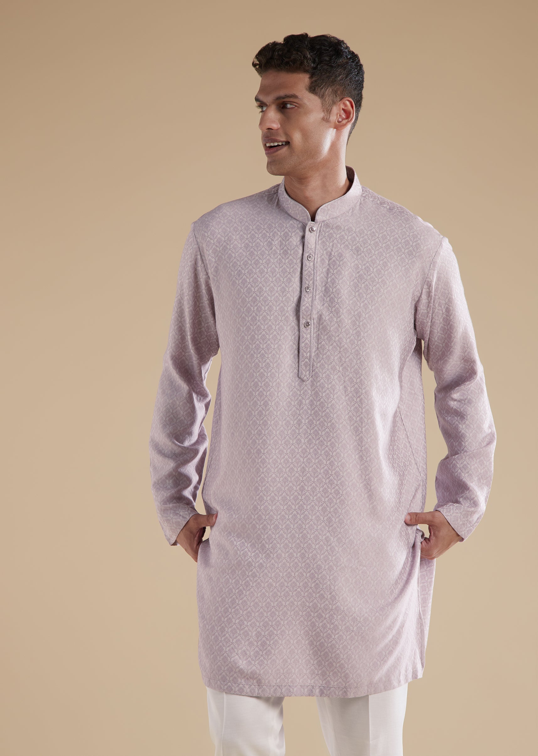 Purple Lilac Jacquard Indowestern With French Knot Cut Dana Work