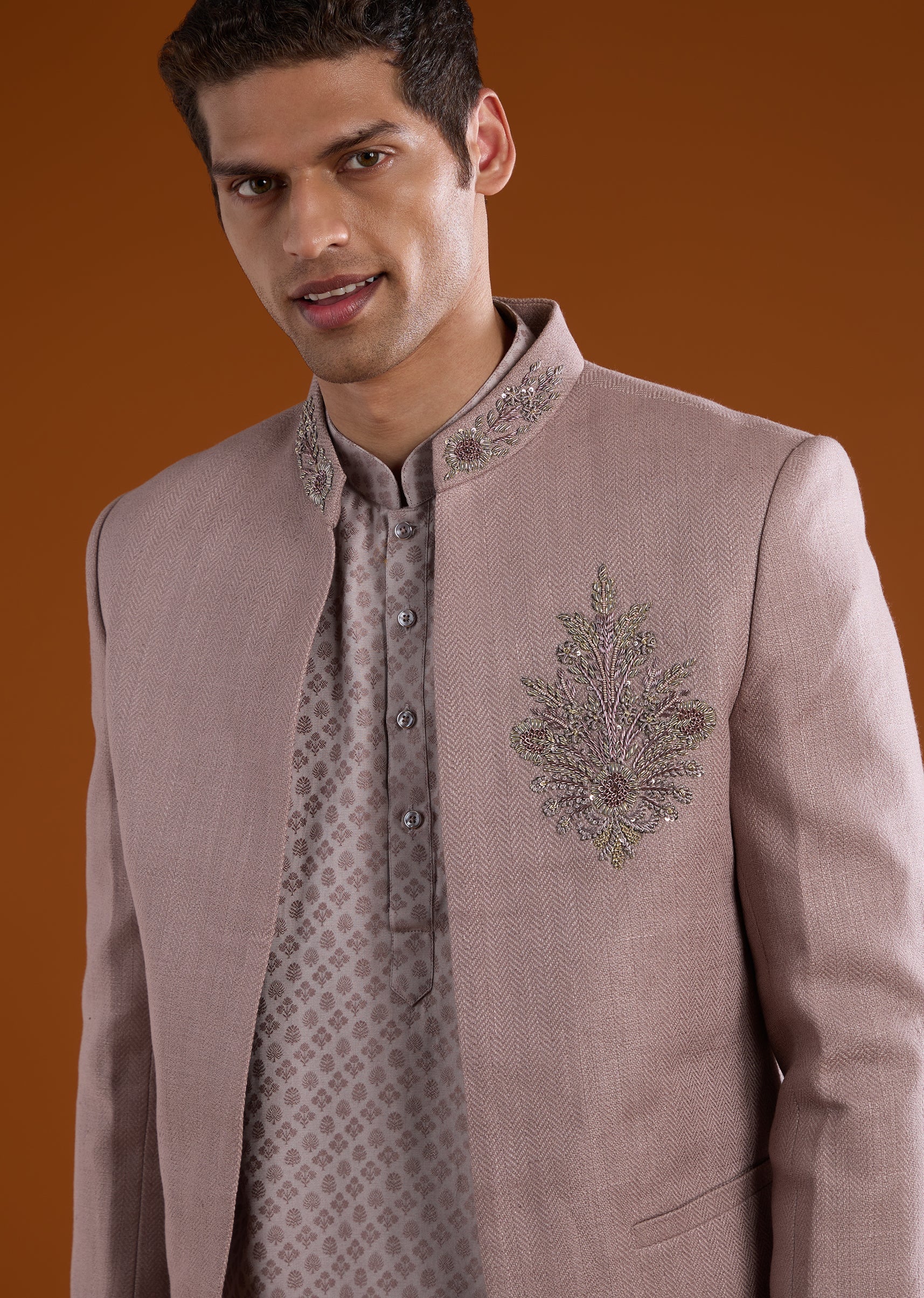 Purple Matka Silk Jodhpuri Kurta Set with Cutdana Work
