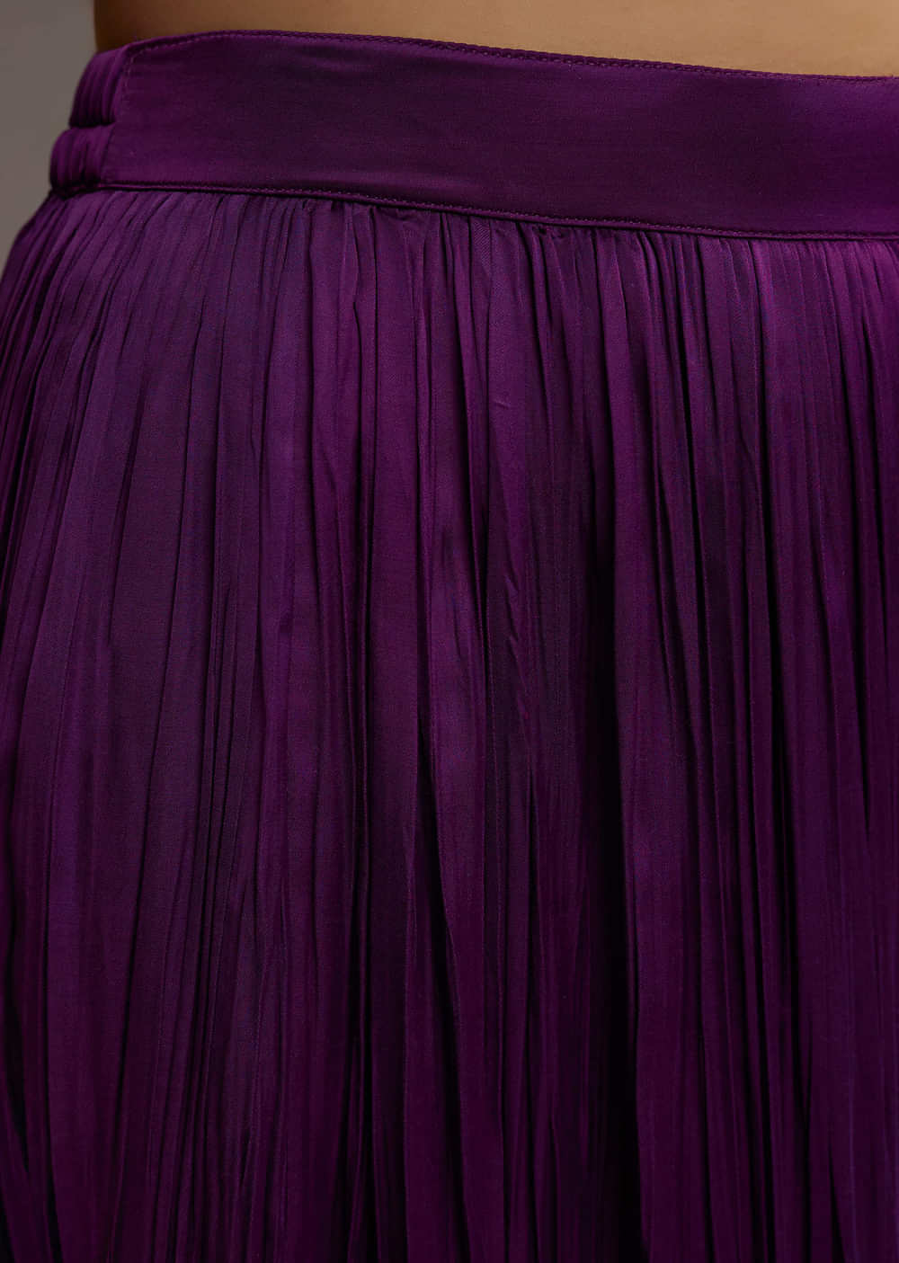 This purple modal satin palazzo suit is designed to drape fluidly over the body without clinging. Opt for your regular size to enjoy its relaxed yet flattering fit, ideal for long hours of celebration.