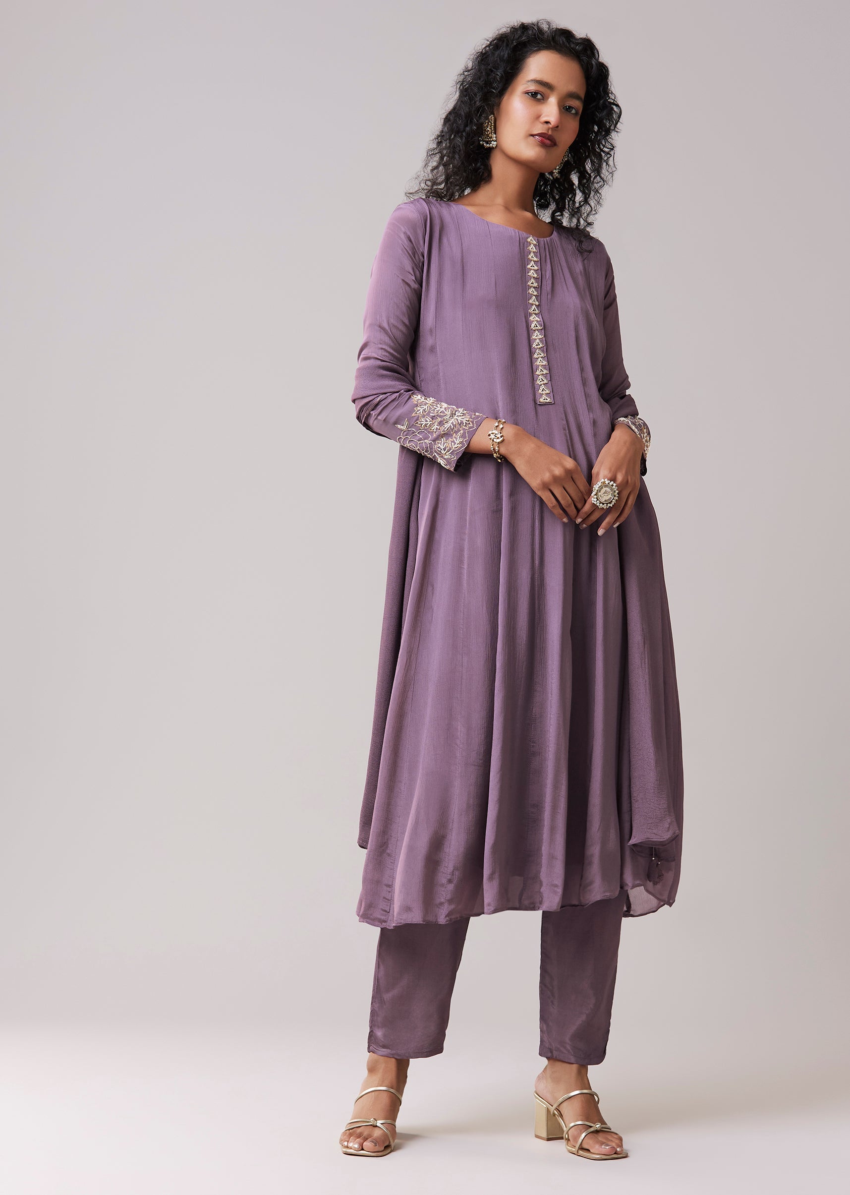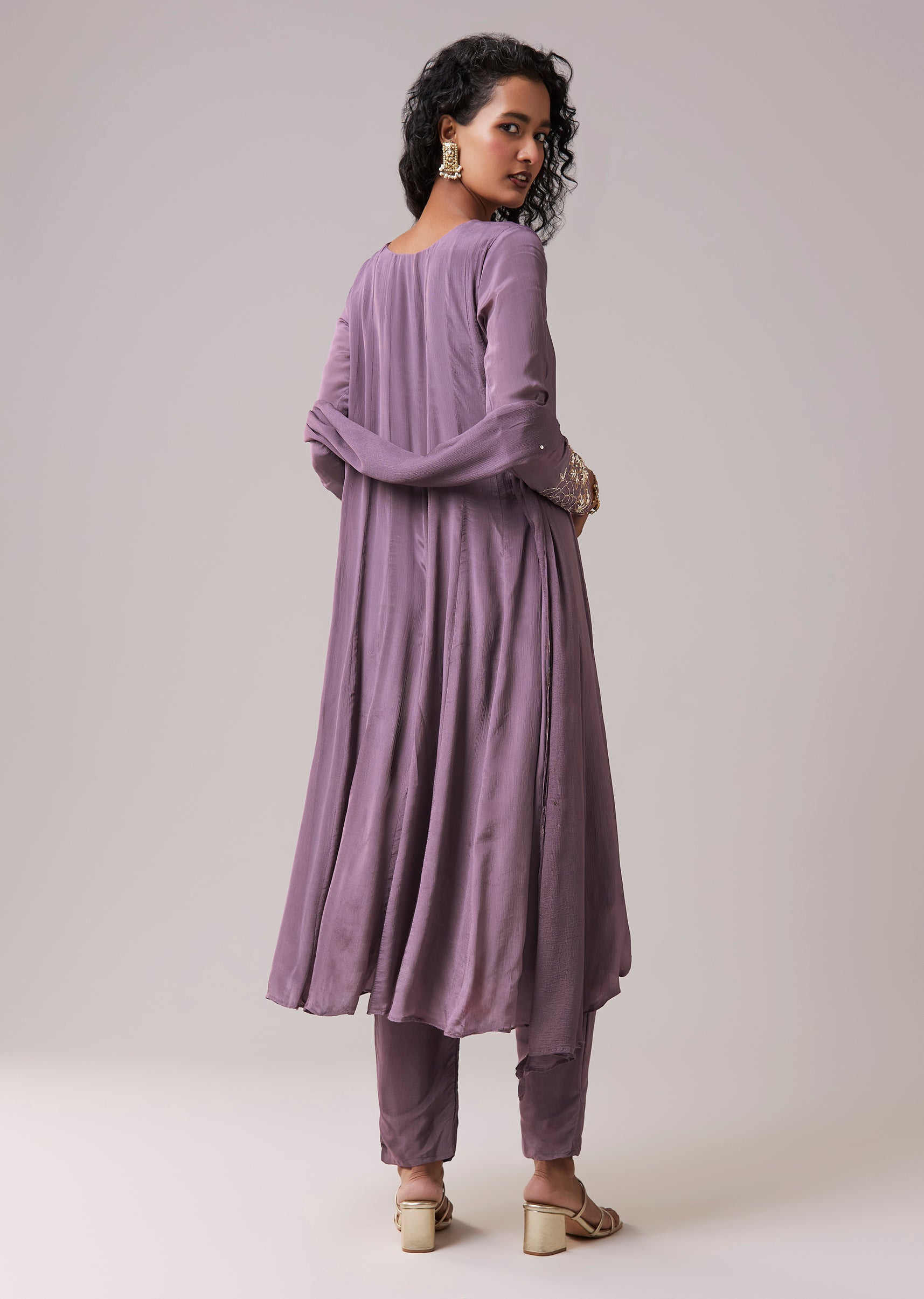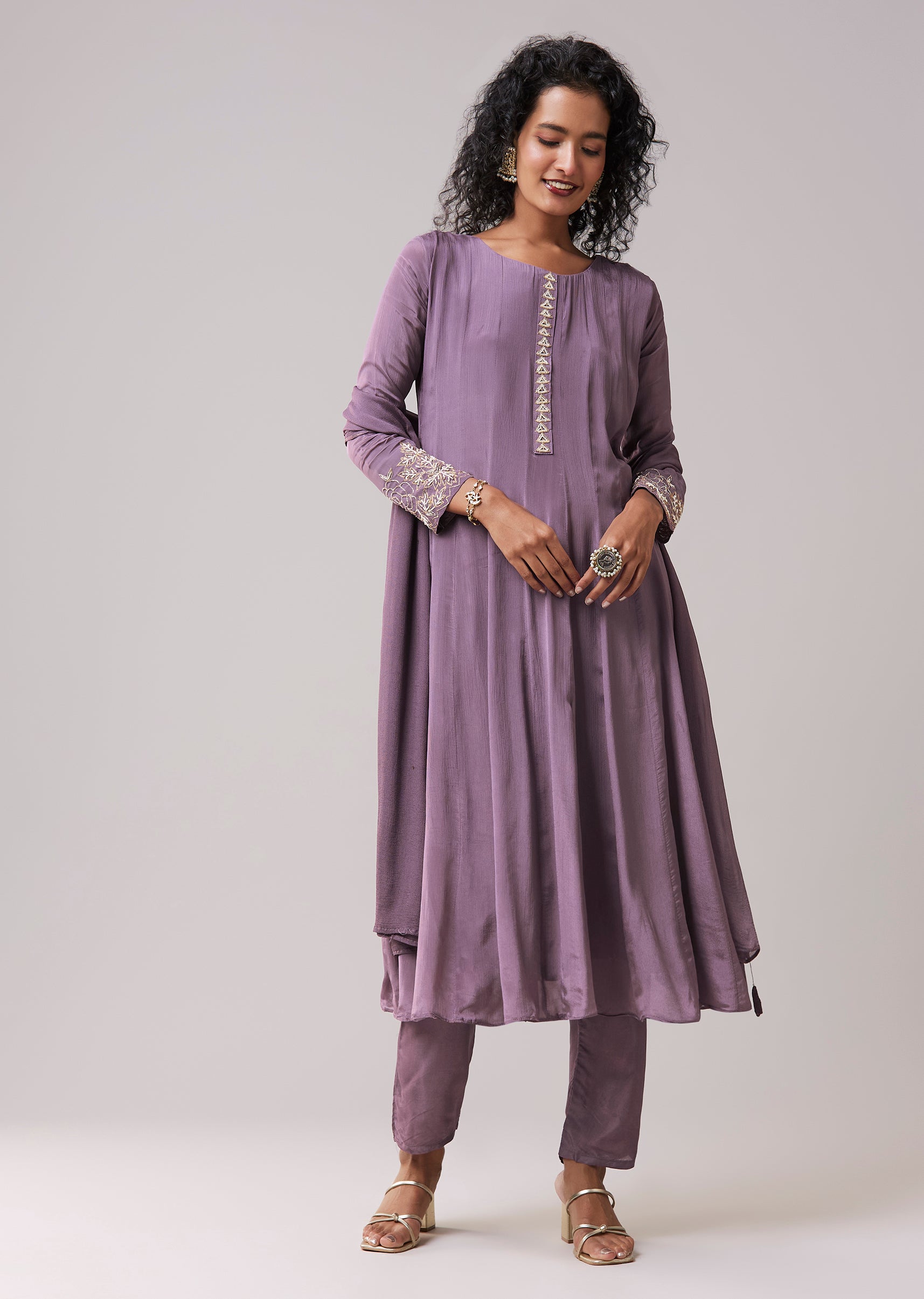 The side zip ensures a secure, flattering fit through the bodice, while the flared anarkali offers comfort and fluid movement.