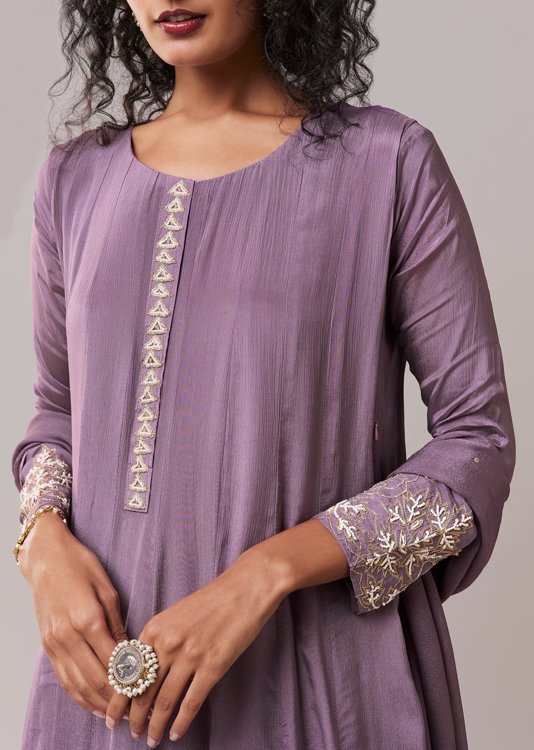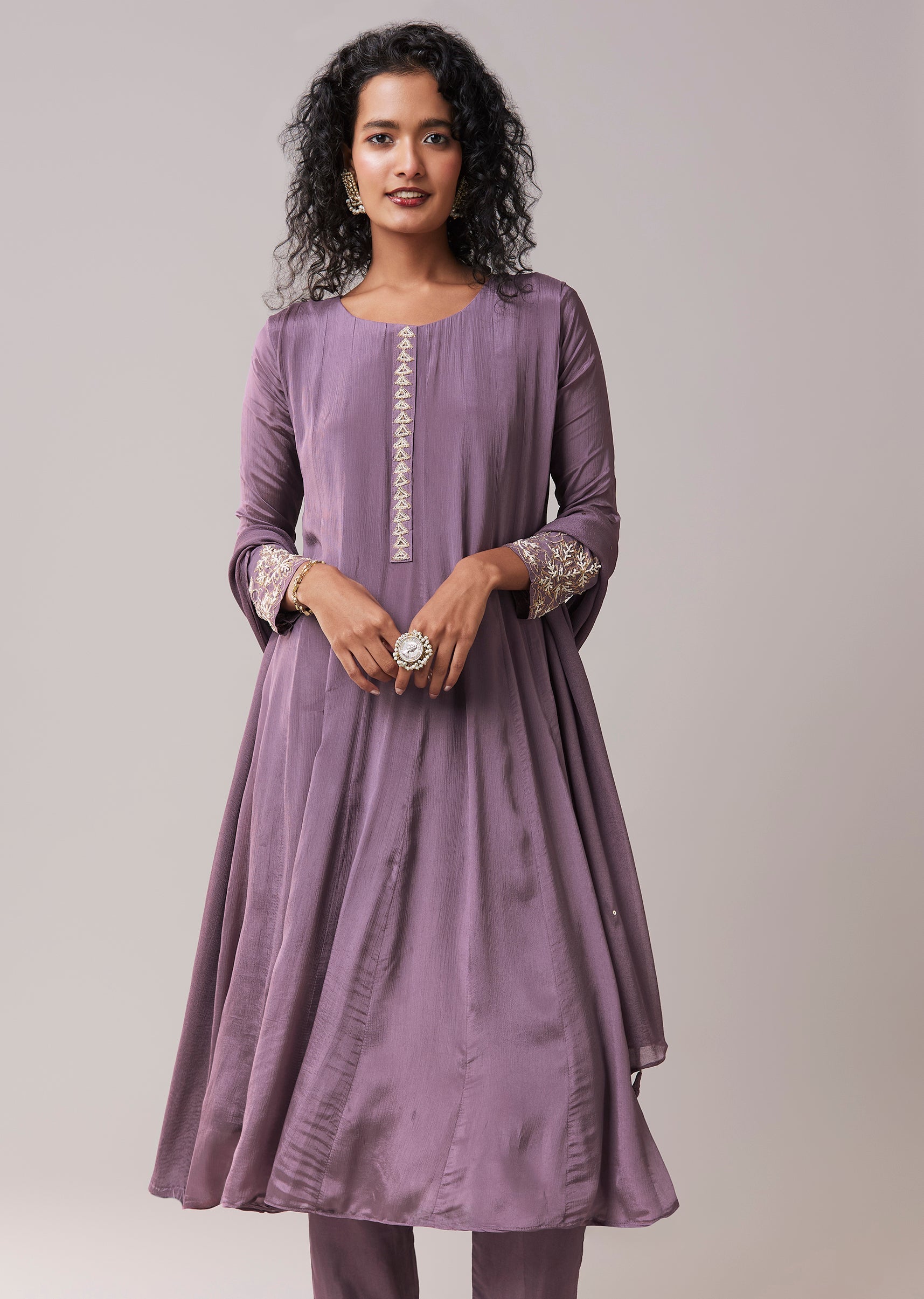 Purple Moti Work Cotton Silk Embroidered Anarkali Set