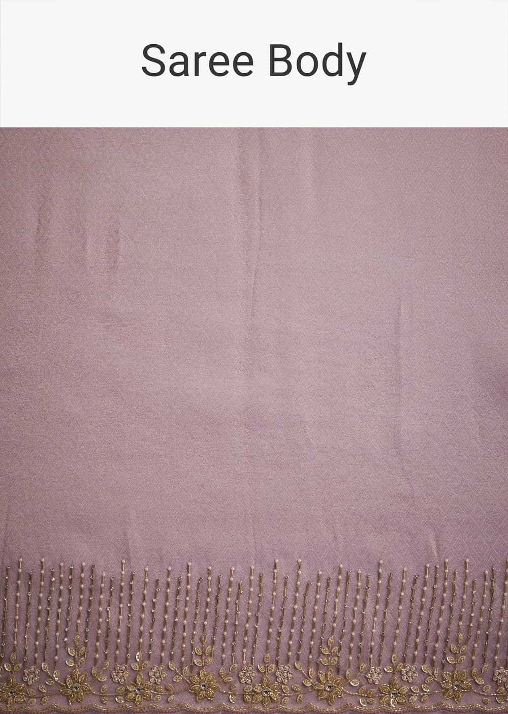 Experience The Regal Charm Of Purple With This Stunning Ombre Jacquard Saree. Featuring Intricate Cutdana And Stone Embroidery, It Exudes A Timeless Appeal, Perfect For Weddings And Grand Celebrations. The Contrasting Blouse Fabric Adds A Modern Touch To Its Traditional Allure, Making It A Standout Piece In Your Wardrobe. With Its Graceful Drape And Exquisite Detailing, This Saree Is Designed To Turn Heads.. Awarded As The Most Trusted Brand We'Re Delivering Styles You Love Just As Promised.