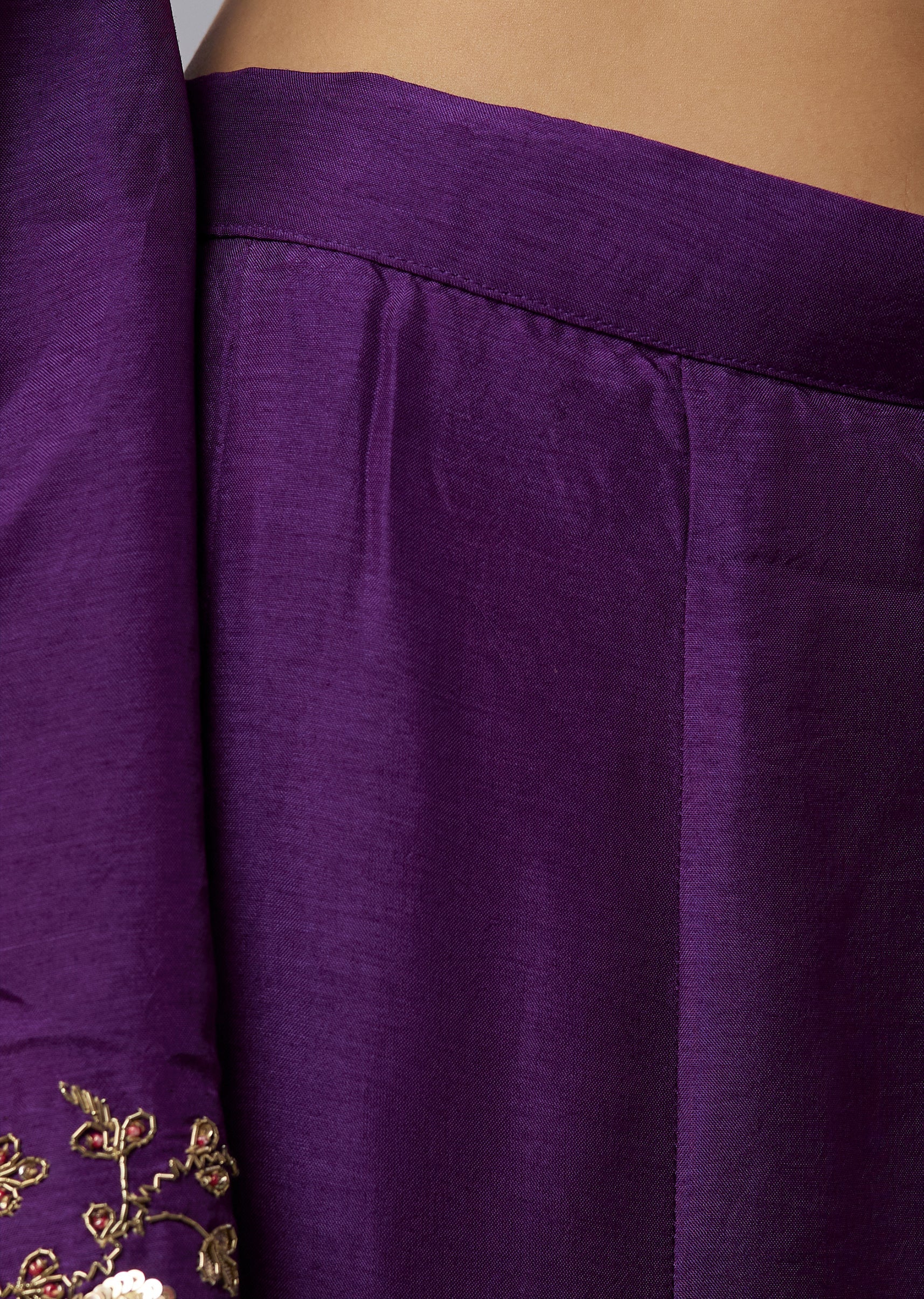 Purple Ombre Satin Palazzo Suits with Zardosi Sequins Work