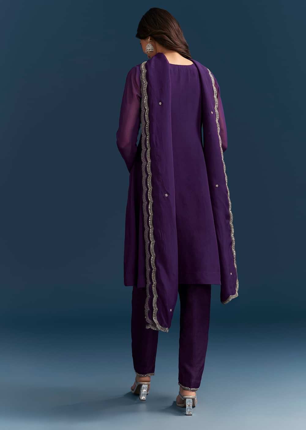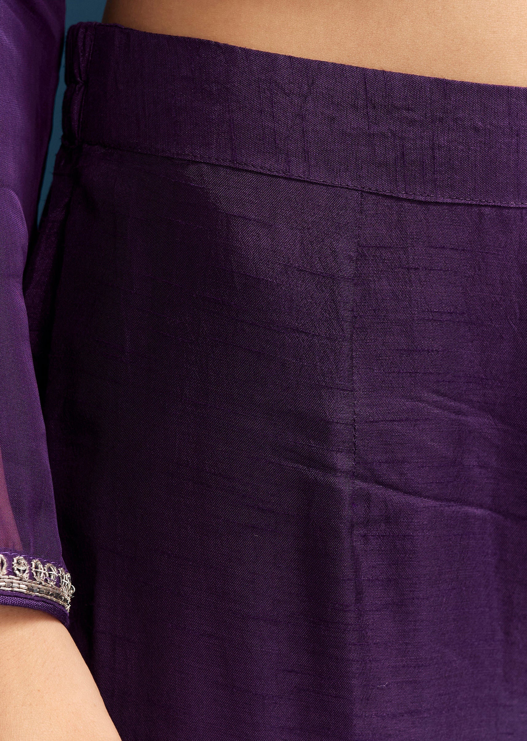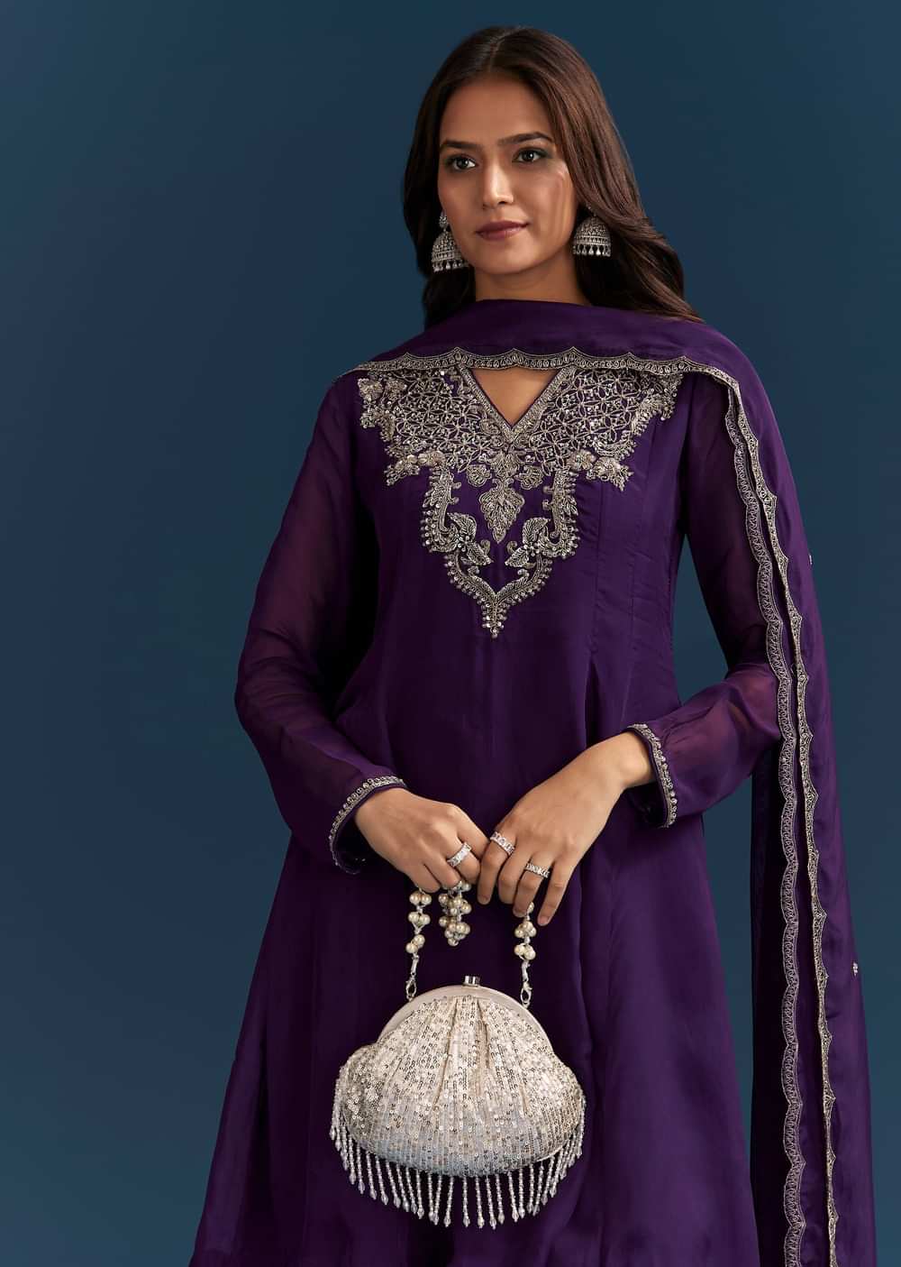 Purple Organza Kurta Set With Embroidery And Dupatta