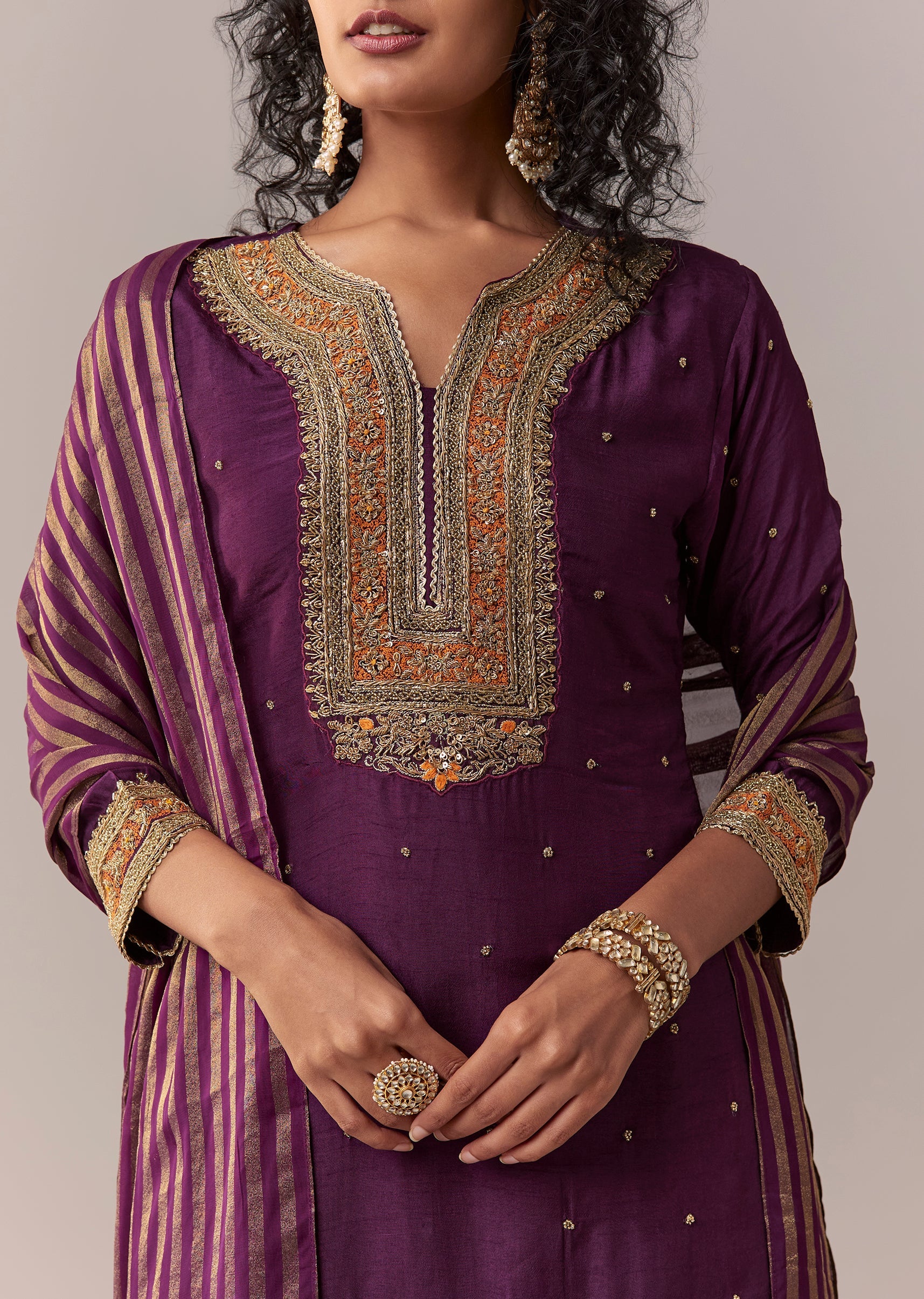 Pair with pearl-and-kundan jewellery for an elegant festive statement.