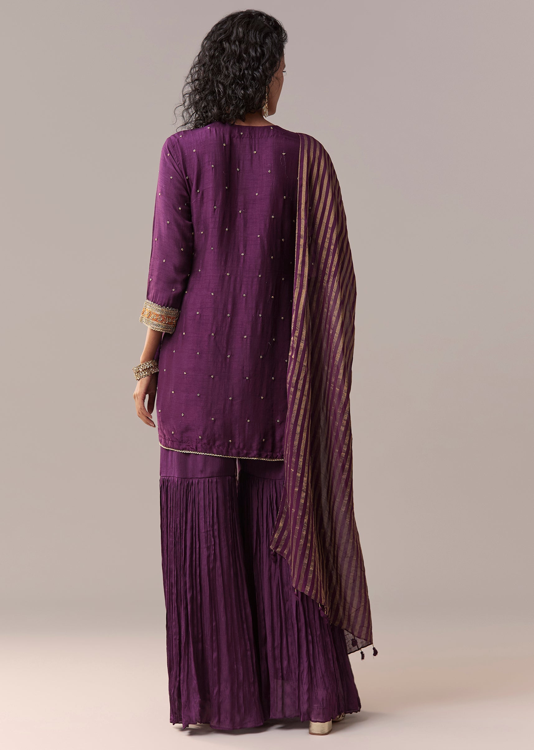 Purple Pakistani-Style Zardosi Sharara Set With Dupatta