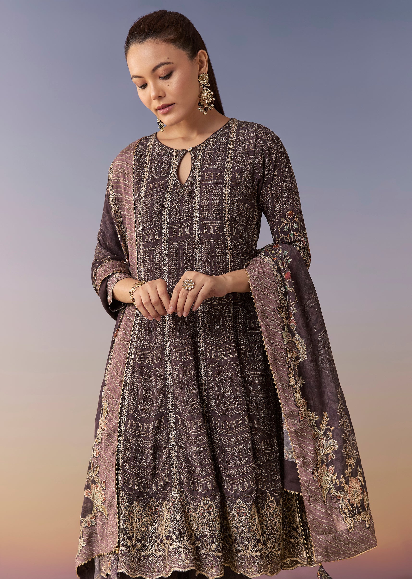 Crafted in crepe, this A-line printed kurta features a keyhole neckline, 3/4th sleeves and side zip closure for a clean fit. Paired with a mid-waist patiala (elasticated) and matching dupatta,... More Product Details