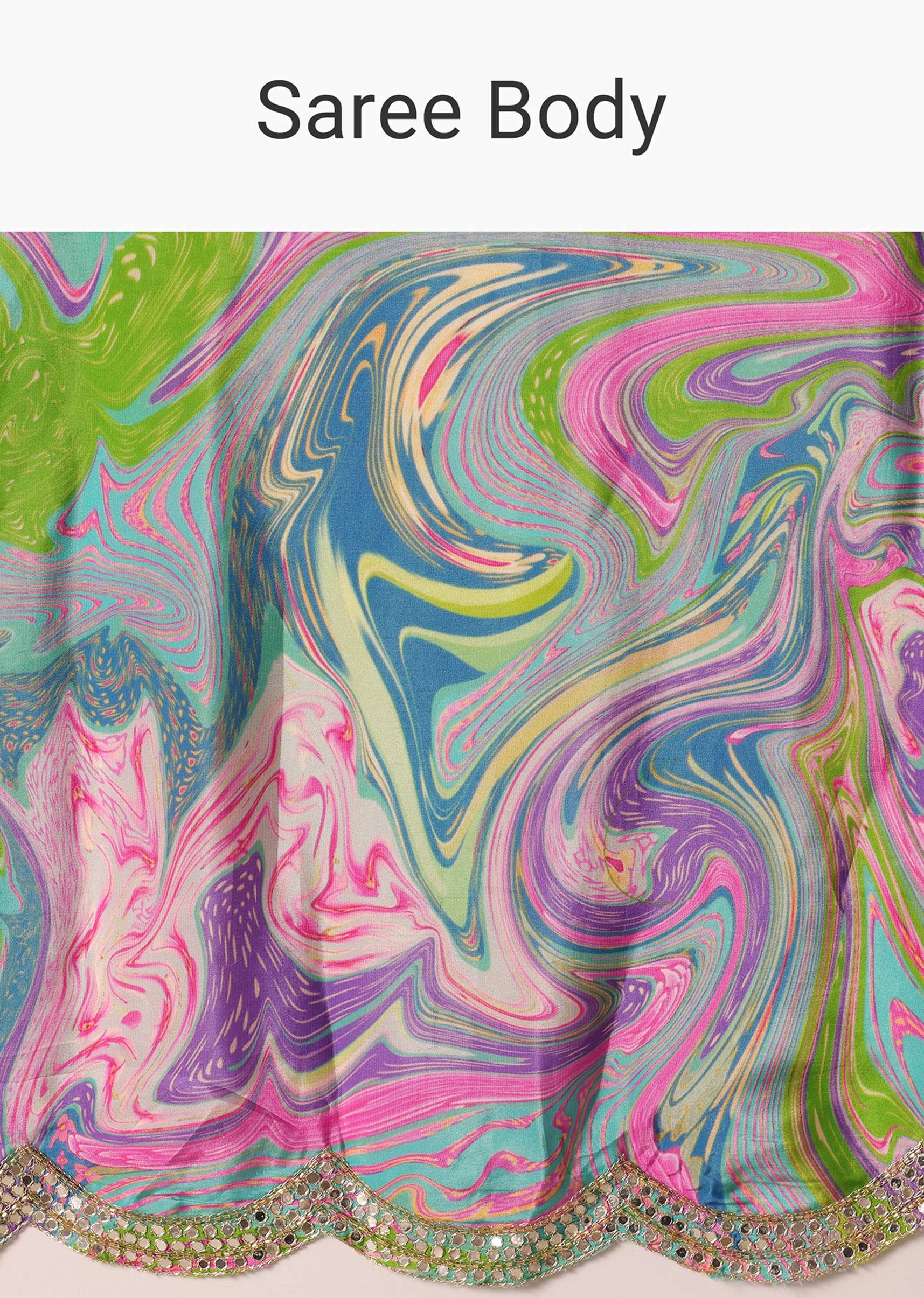 When it comes to festivewear this one is adorned with glimmering mirror embroidery for a showstopping glamorous finish. Elevated with kaleidoscope prints and a cutwork scallop border this saree lends an alluring vibe. The lush muslin fabric and captivating hue make a fashionable statement. Paired with an unstitched blouse piece it ensures an eyecatching appearance. WASH CARE INSTRUCTIONS. Awarded As The Most Trusted Brand We'Re Delivering Styles You Love Just As Promised.