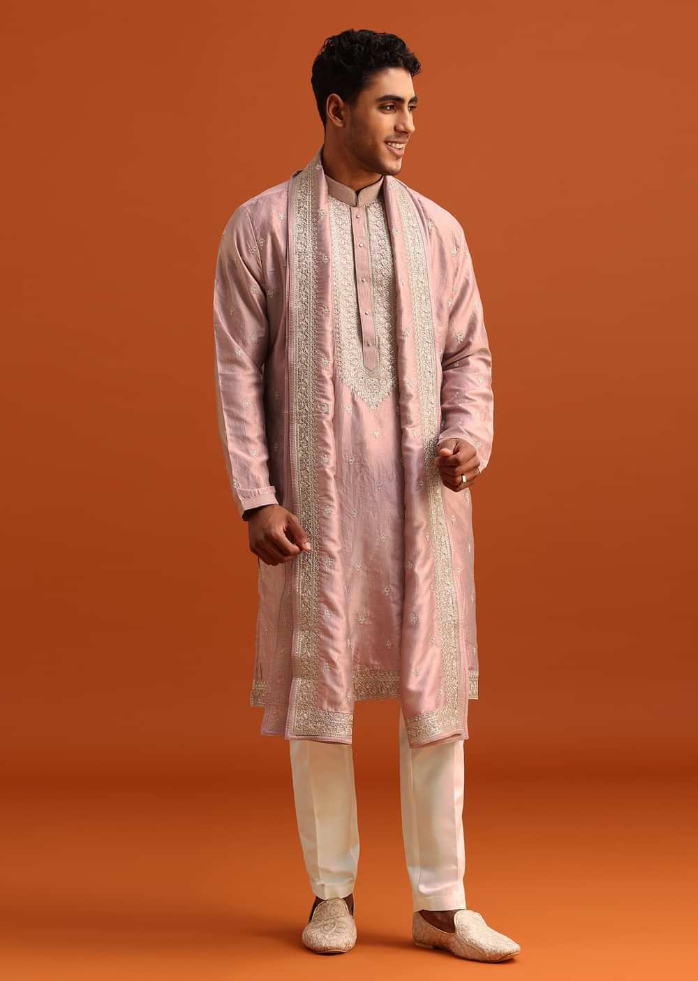 Dive into the world of sophisticated charm with our exquisitely designed purple kurta set. Crafted from premium raw silk fabric, this kurta is elevated a refined mandarin collar and front button that adds a touch of sophistication. Delicately adorned with resham thread hand work on the kurta and dupatta border, the detailed craftsmanship acts as the showstopper at festive occasions or wedding functions. Awarded as the Most Trusted Brand, we're delivering styles you love, just as promised.