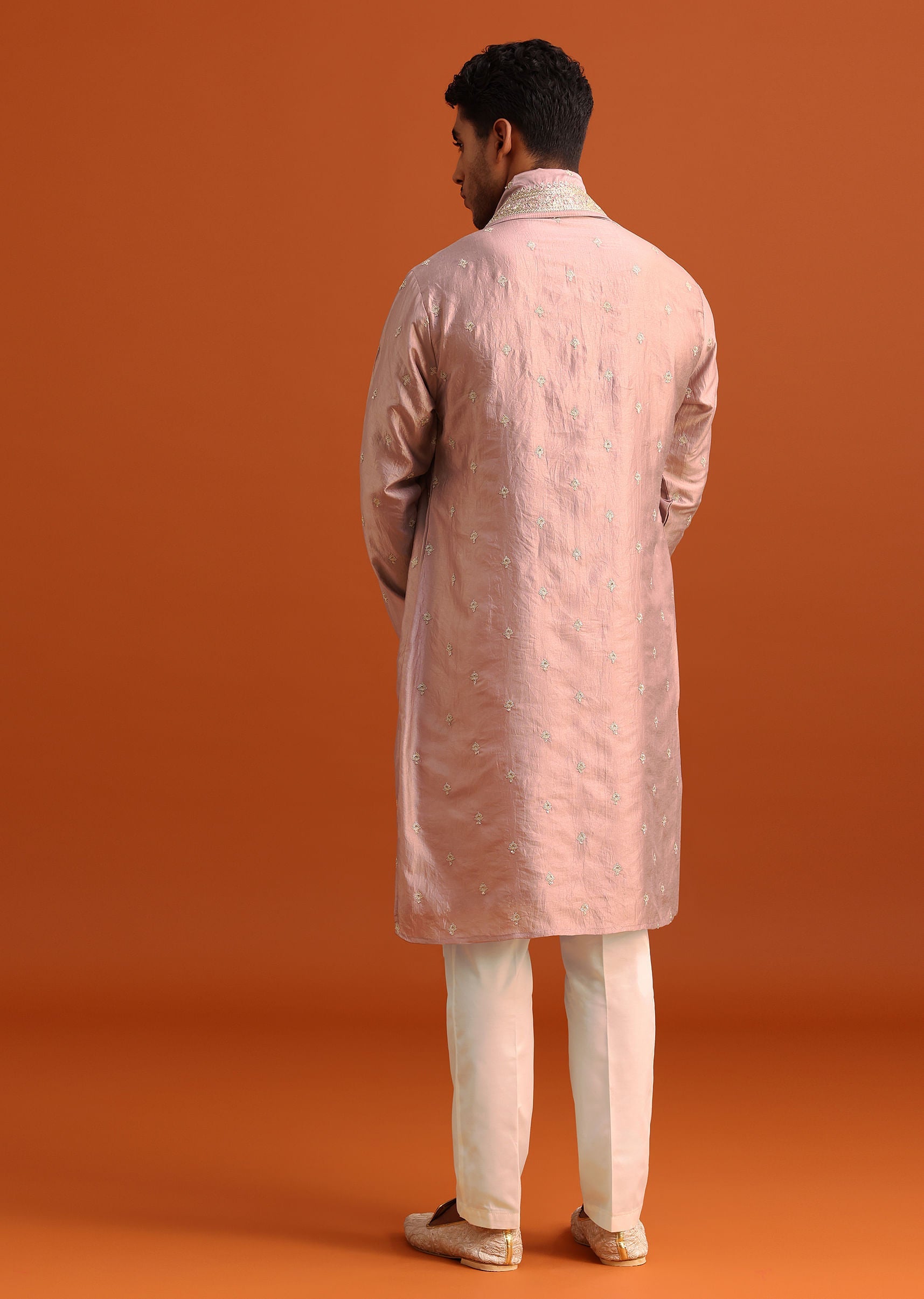 Dive into the world of sophisticated charm with our exquisitely designed purple kurta set. Crafted from premium raw silk fabric, this kurta is elevated a refined mandarin collar and front... More Product Details