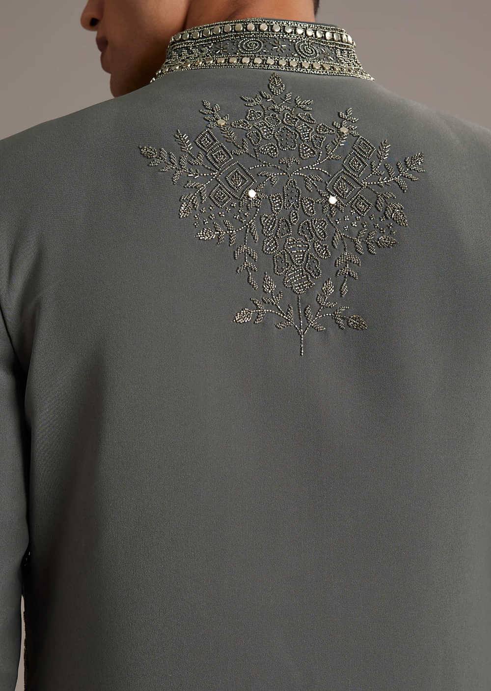 Craft leads the way as this purple rayon men’s indo western set layers metal, beads, and cutdana work into bold, tidy panels. The colour holds depth under lights so the... More Product Details