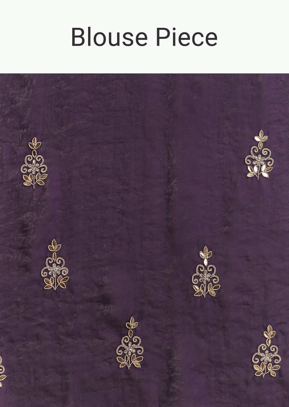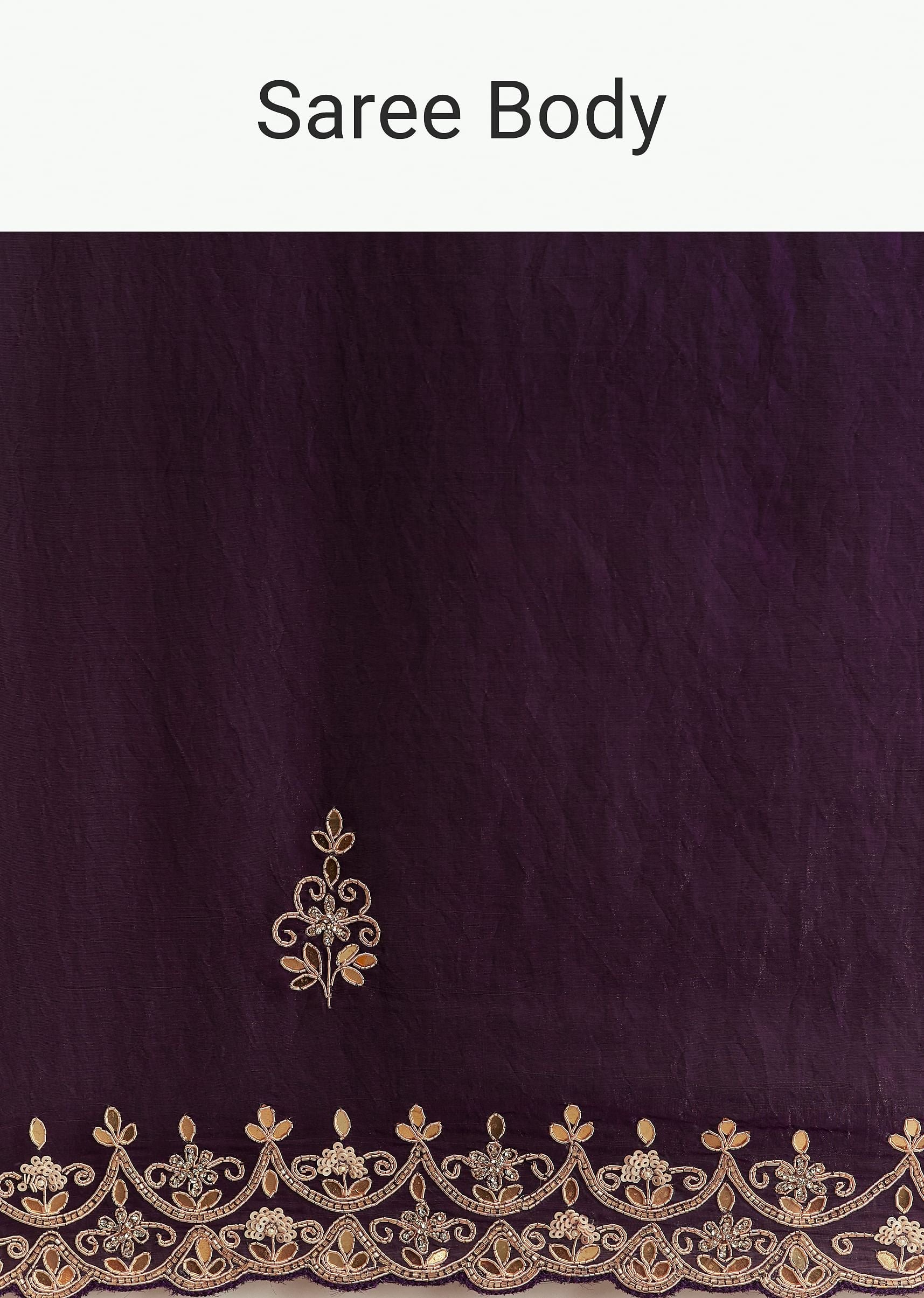 Indulge In Timeless Elegance With This Purple Satin Saree Adorned With Intricate Sequins Cutdana And Gotapatti Embroidery. The Deep Purple Hue Exudes Sophistication While The Scallop Border Enhances Its Regal... More Product Details