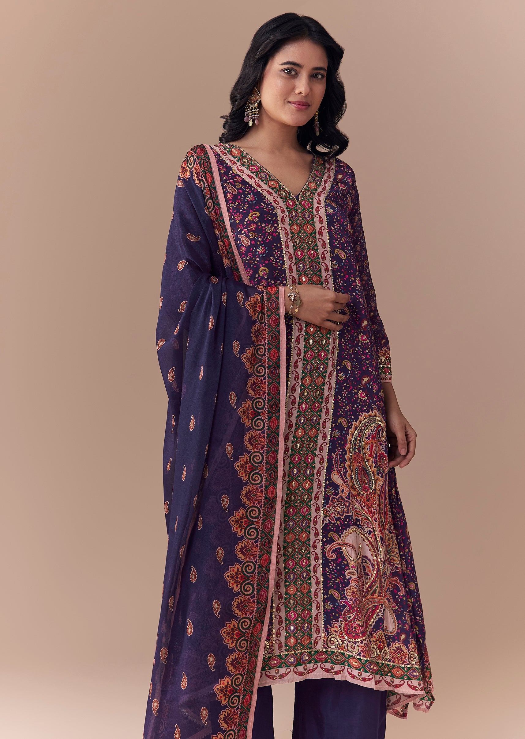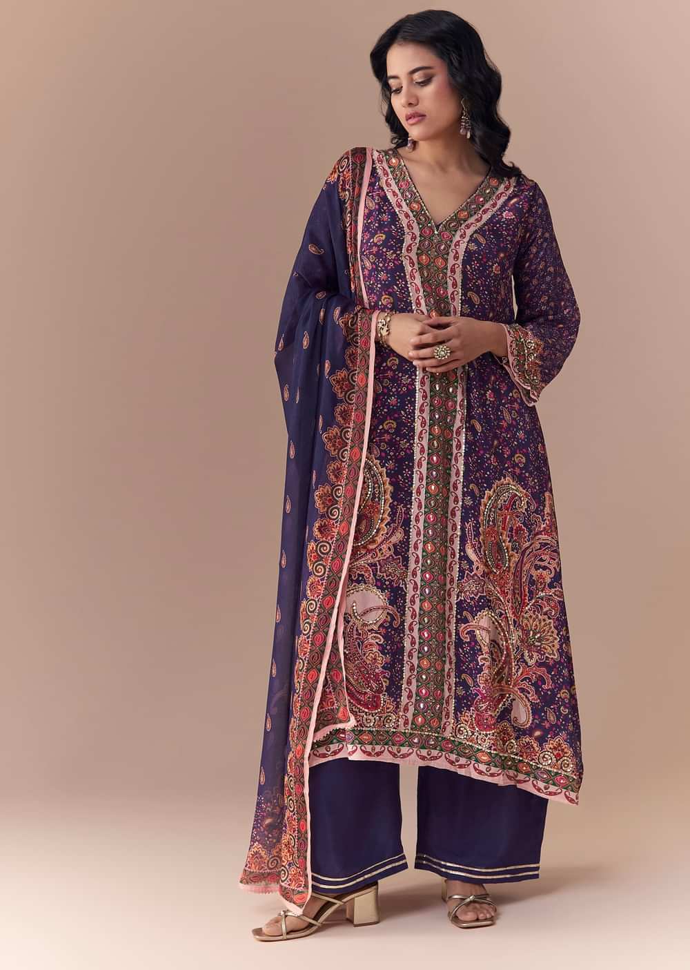 This elegant ensemble features a printed kurta adorned with delicate sequins work for a subtle festive shimmer. Crafted from soft crepe, the kurta offers a comfortable yet refined drape. The... More Product Details