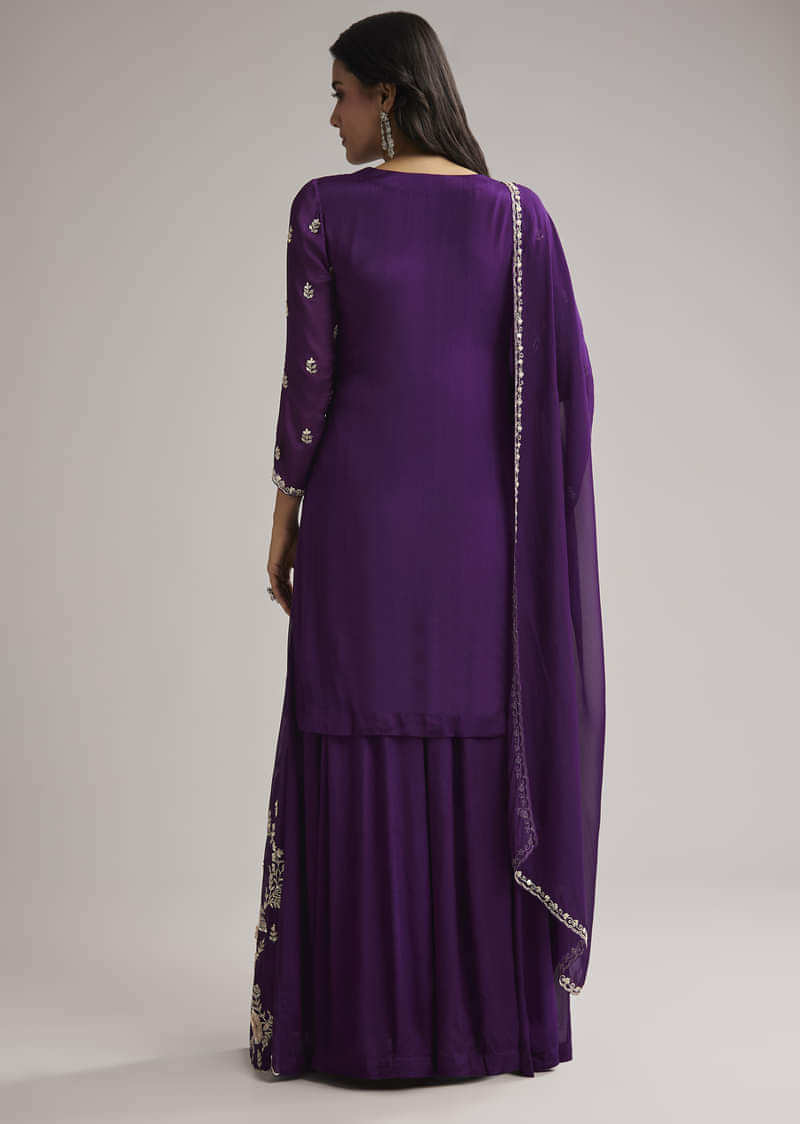 Purple Sequin Embroidered Palazzo Set With Dupatta