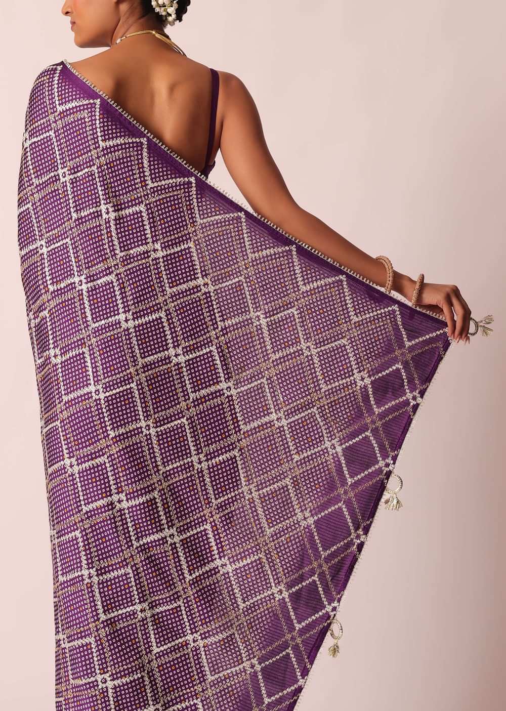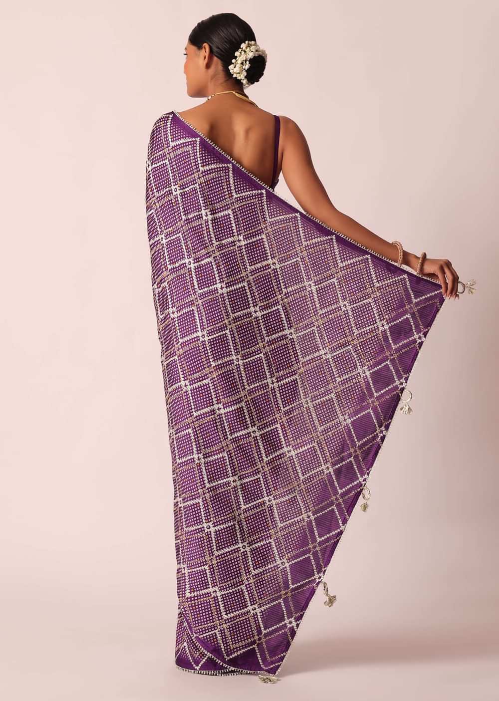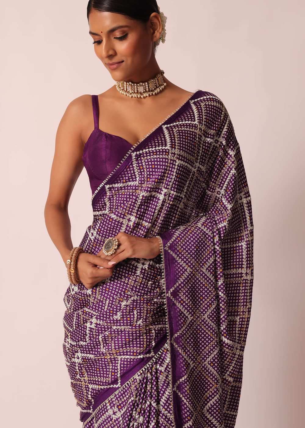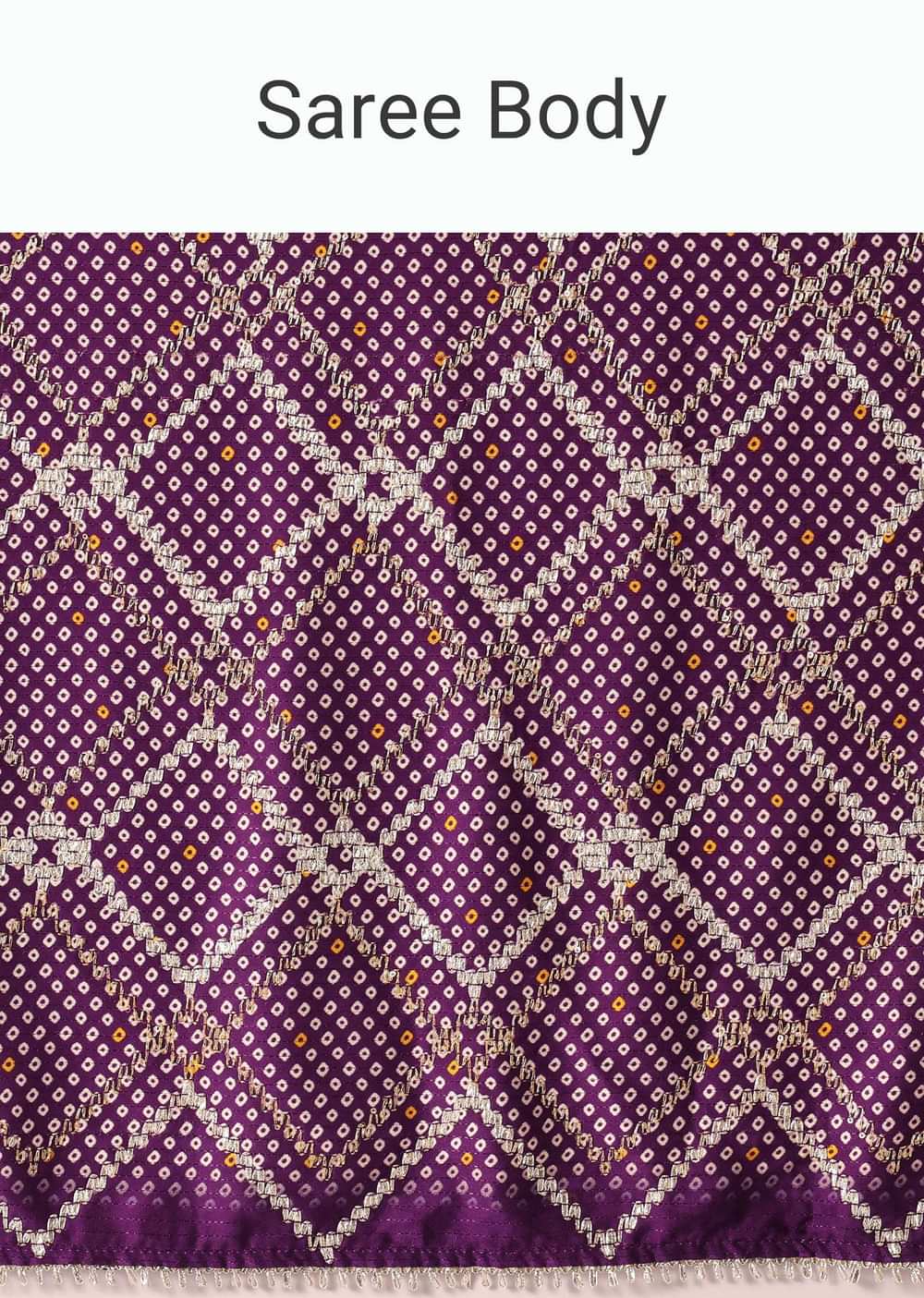 Purple Silk Bandhani Print Saree With Gota Embroidery And Unstitched Blouse Piece